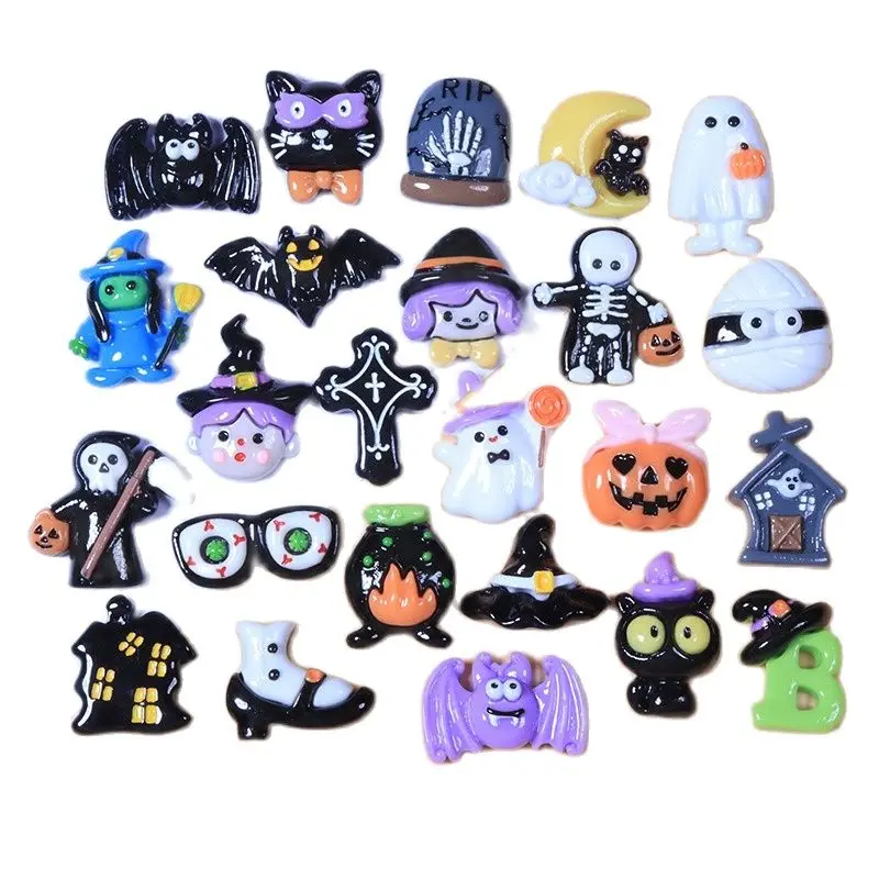 10Pcs New Cute Resin Mini Halloween Collection Flat Back Manicure Parts Embellishments For Hair Bows Accessories