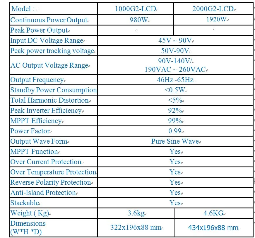 1KW 2KW Solar Grid Tie Inverter for Solar Panel Battery 1000W 2000W Limiter for PV Power DC 22-65V45-90V AC 110V 120V 220V 230V