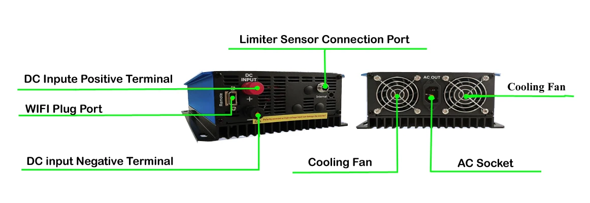 3.1 This installation is not require an additional limiter module,Installation is much easier.Clamp the current sensor cable to the hot wire to measure the current,the internal limiter will auto detect the load power and control the inverter output power,excess power will be well controlled.
