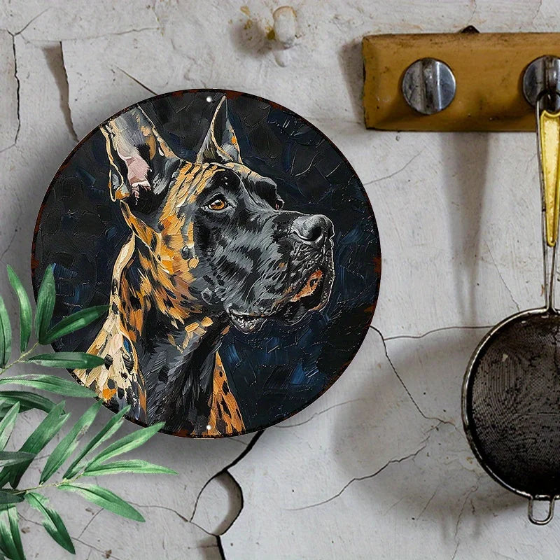 1pc Great Dane Aluminum Sign - UV Resistant & Waterproof 8" Round Wall Art for Dog Lovers - Home Decor Gift