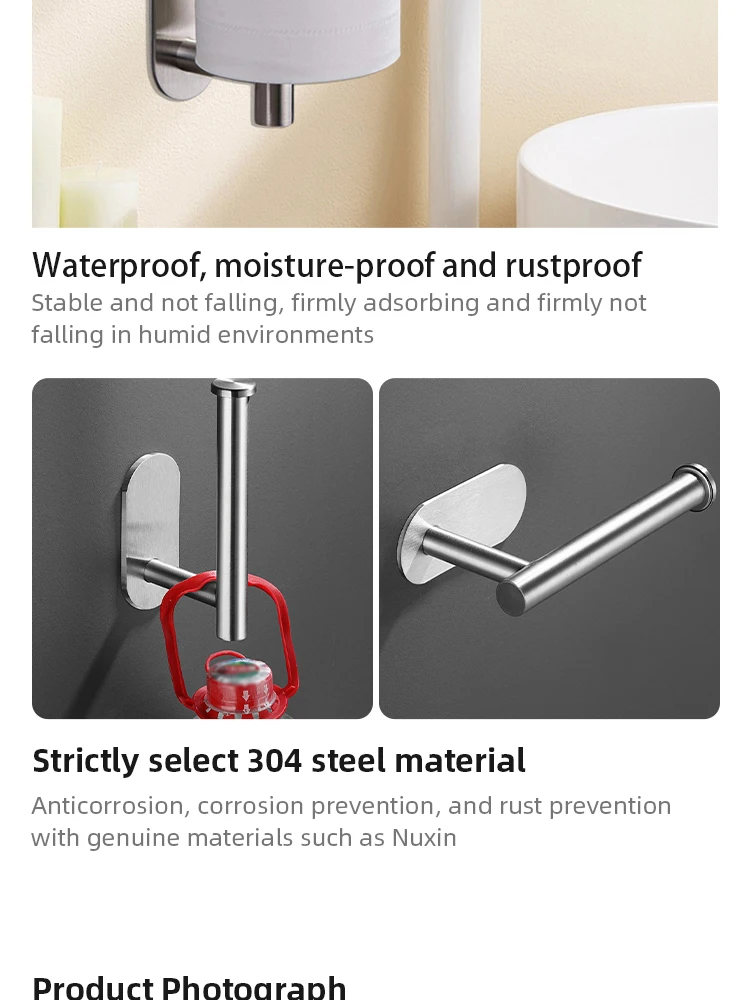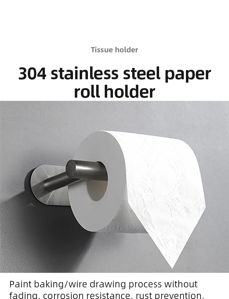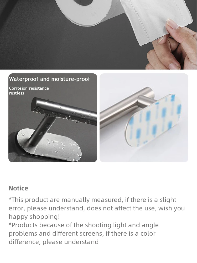 3. Anti-corrosion: The paper towel holder is made of waterproof SUS304 stainless steel, with a durable rust and scratch resistant surface