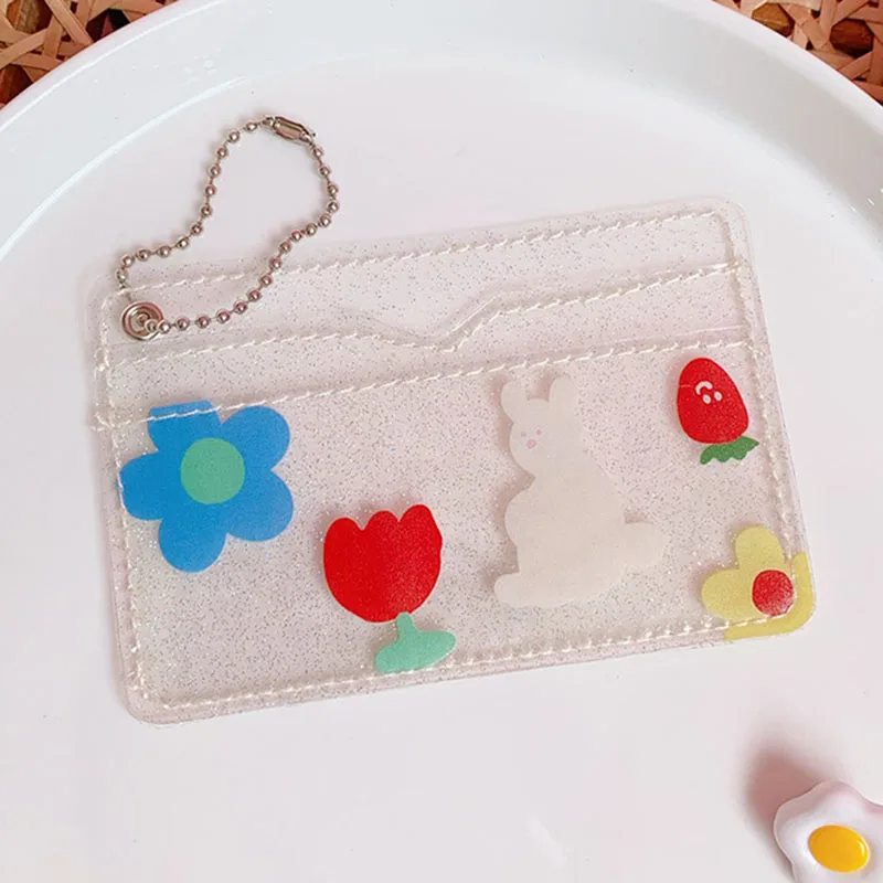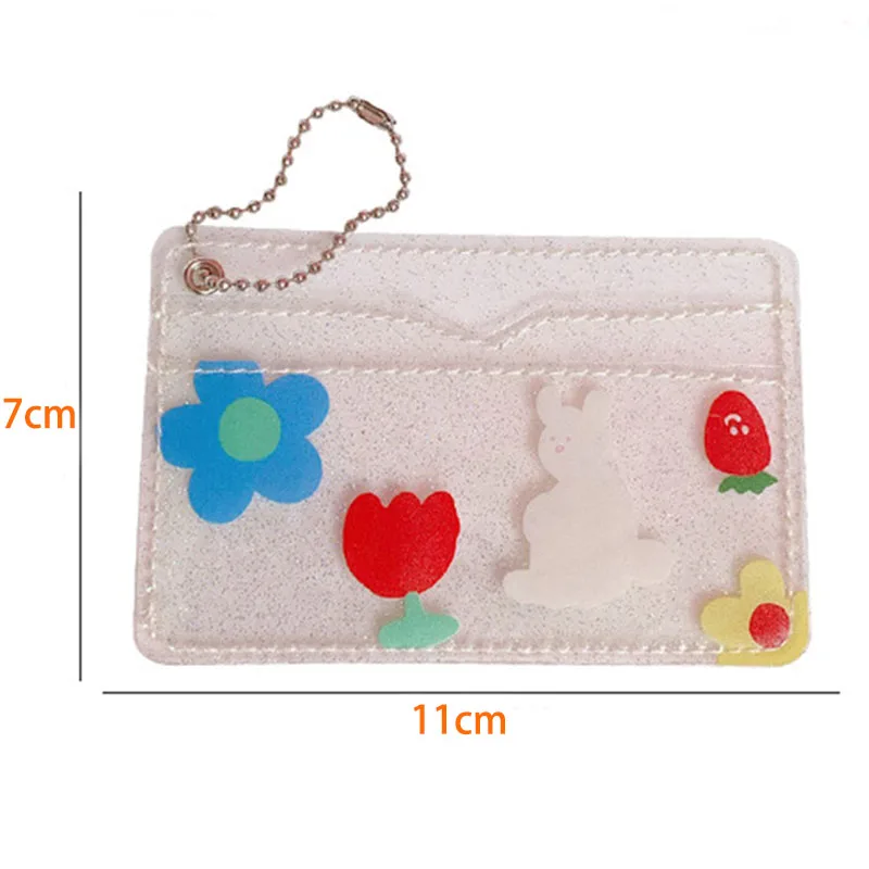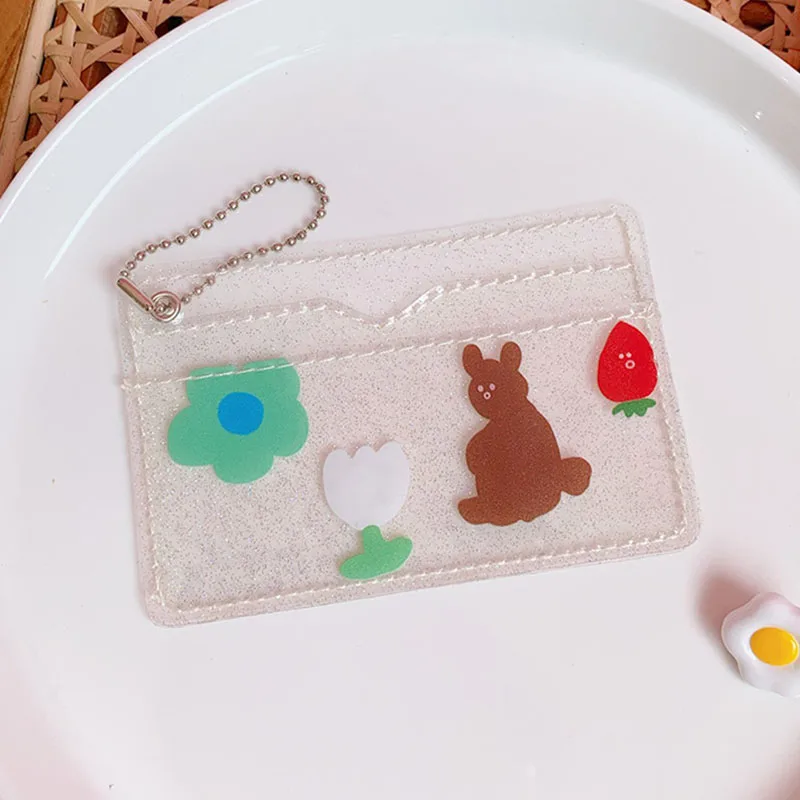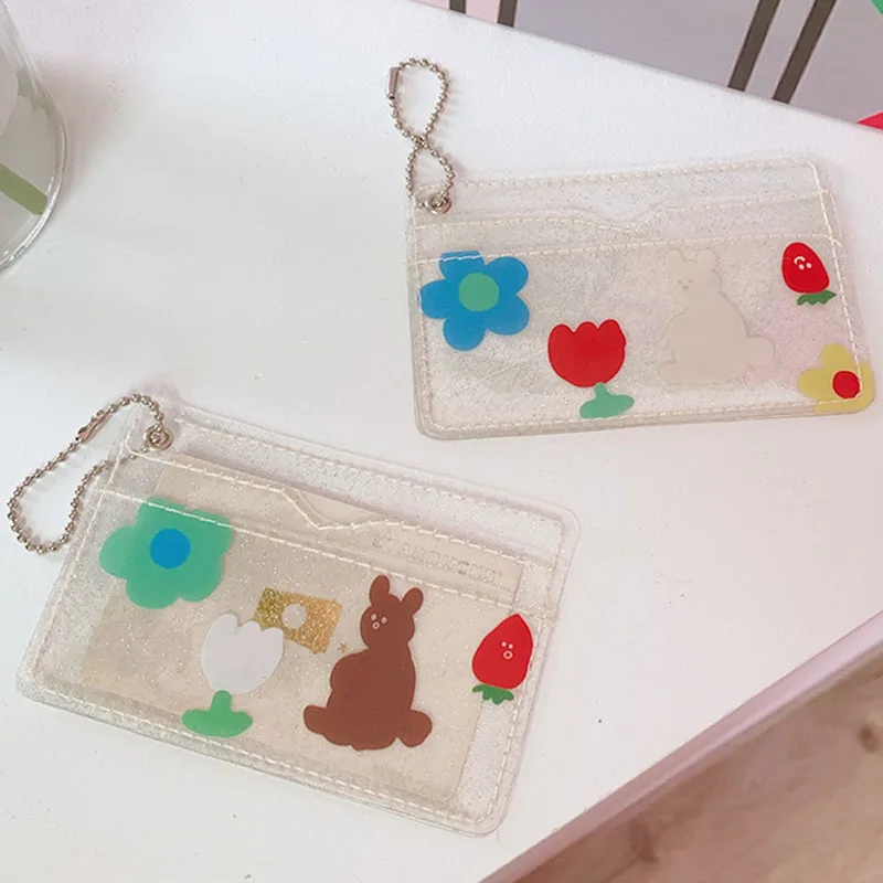 2Bits Cute Bear Rabbit Transparent Waterproof PVC Women Card Case Business Card Holder Girls Credit Card Bag ID Card Mini Wallet