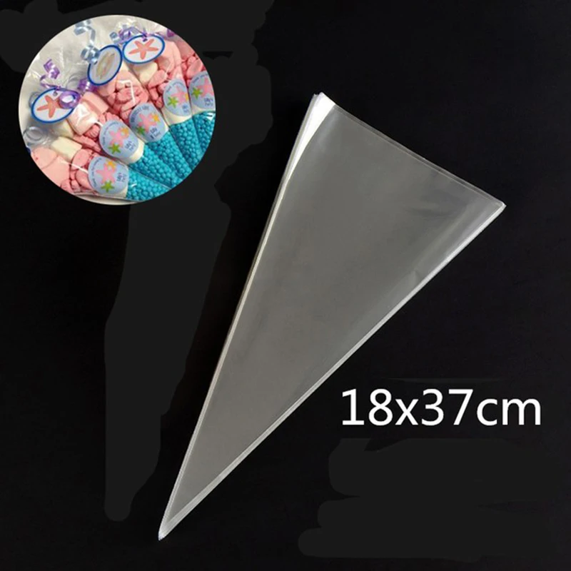 50pcs Cone Candy Bag Transparent Plastic Triangle Ice Cream Cone Candy Popcorn Bag With Kink Gift Bag Trick Or Treat Packaging