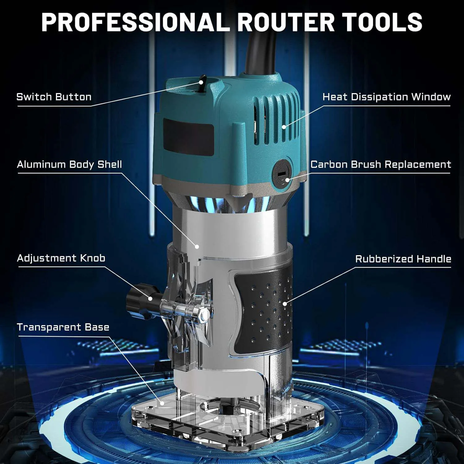 【Power Design 】With an put power of 800W and a speed of 30,000 RPM, the router tool motor guides make it difficult power for routing and triming applications.