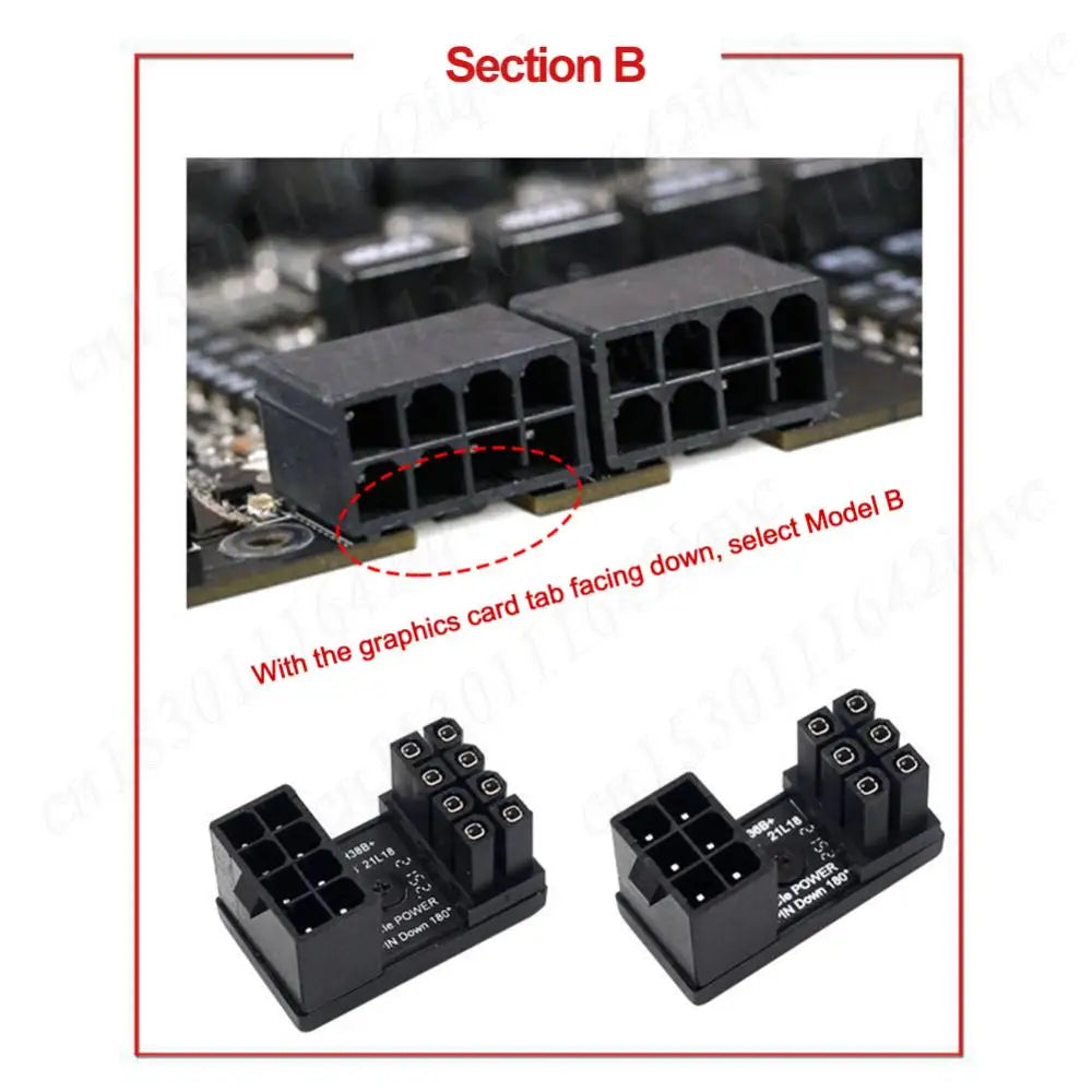 1. Solves Graphics Card Top Cover Panel Issues: This turn connector can rotate the power interface of the graphics card by 180 degrees, allowing the power cord to be more conveniently connected to the top of the graphics card, solving the inconvenience and messy wiring caused by the graphics card top cover panel.