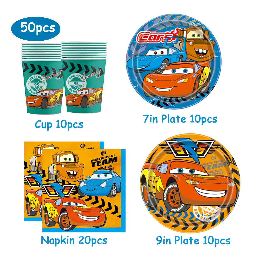 Disney Cars Birthday Party Decorations Lightning Mcqueen Disposable Tableware Set Cups Plates Balloon for Race Party Baby Shower