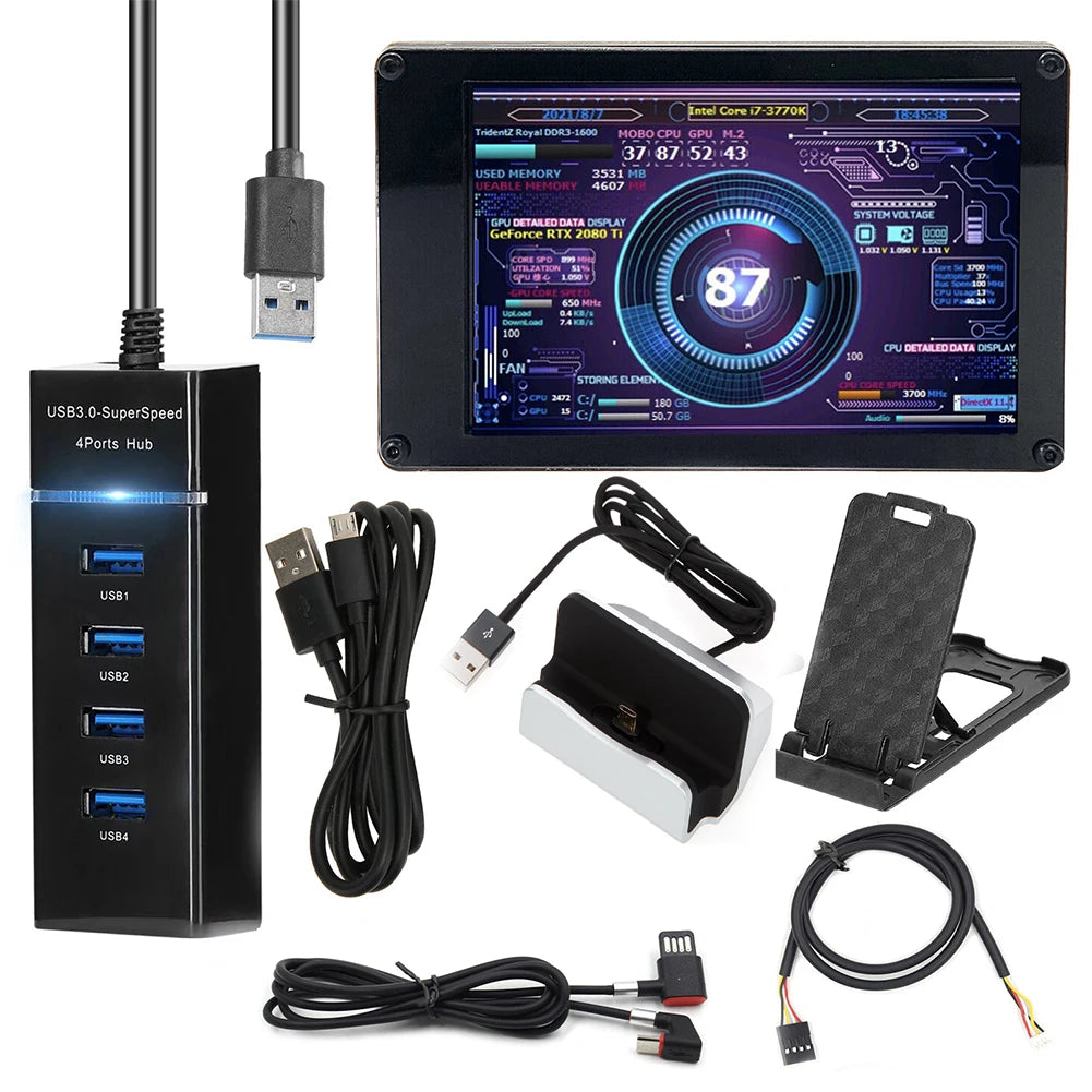 Dual USB PC Secondary Display 3.5 Inch IPS DIY Computer Temperature Monitoring CPU GPU RAM HDD Acrylic for Mini ITX Case AIDA64