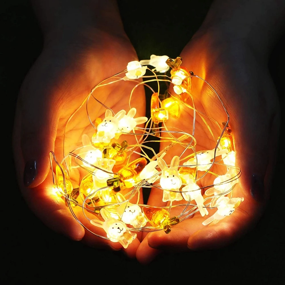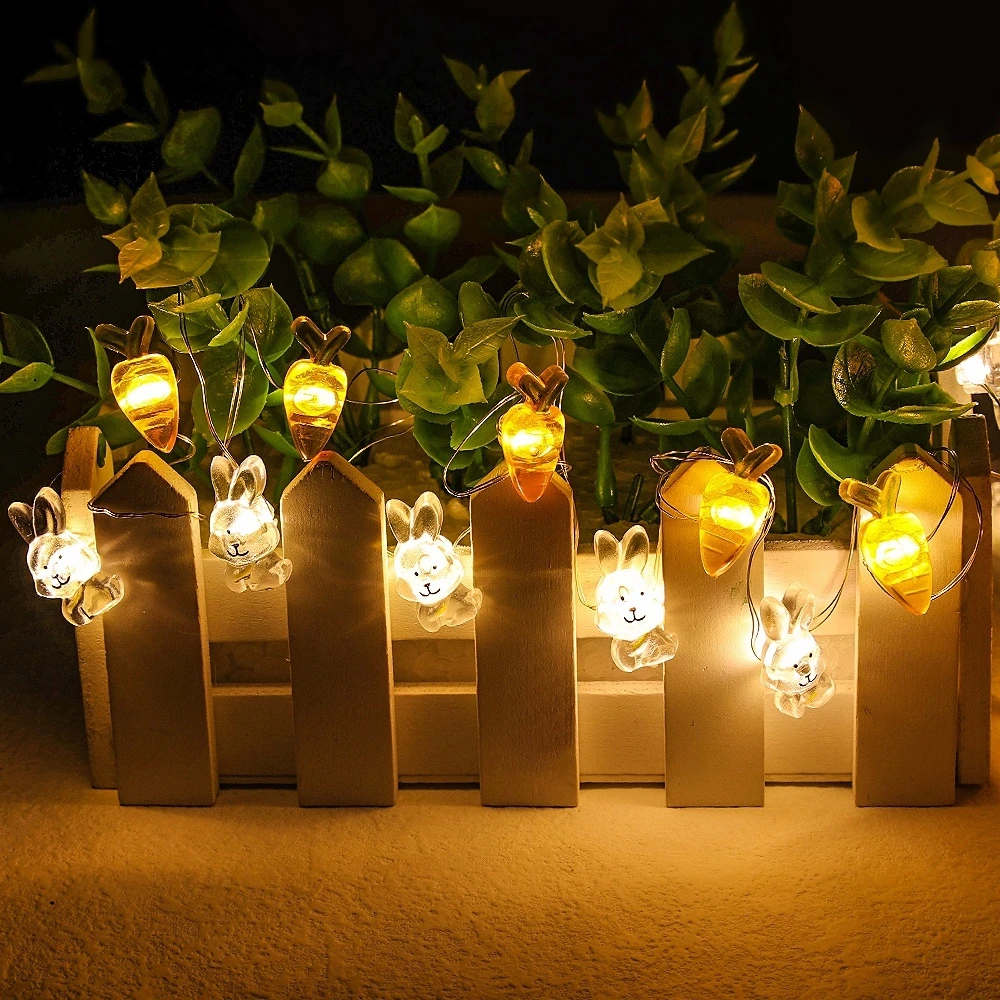 Easter Rabbits Carrots Light Decoration Batteries Copper Wire Waterproof LED String Lights Home Outdoor Easter Party Decorations