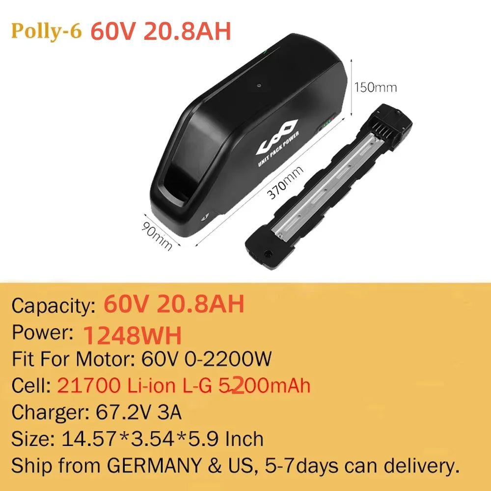 L-G/Tes-la/Sams-g Cells Ebike Battery Hailong Polly 36V 48V 52V 14.4Ah 13Ah 15Ah 20Ah 24Ah 25Ah Downtube 18650 21700 Electric Bike Batteria for 350W 500W 750W 1000W 1500W Motor
