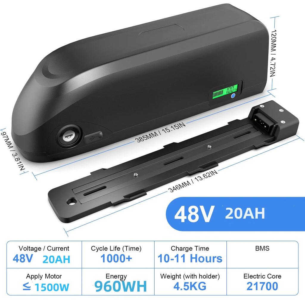 Capacity: 10 - 20Ah,36V 13Ah 15Ah 17.5Ah 19.2Ah / 48V 12Ah 14Ah 14.4Ah optional