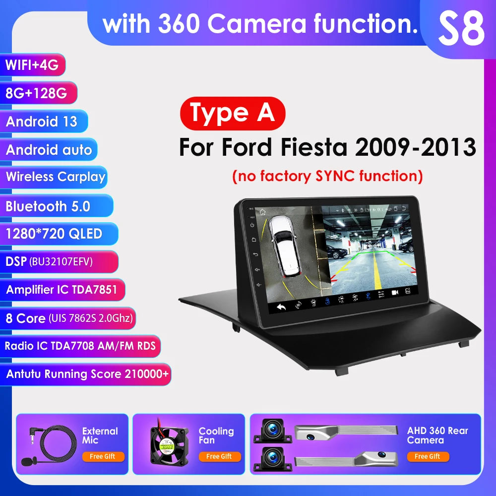 Hizpo Smart Car Systems Radio for Ford Fiesta MK7 2009-2017 Car Multimedia GPS 2din Autoradio Wireless CarPlay Android Auto WIFI