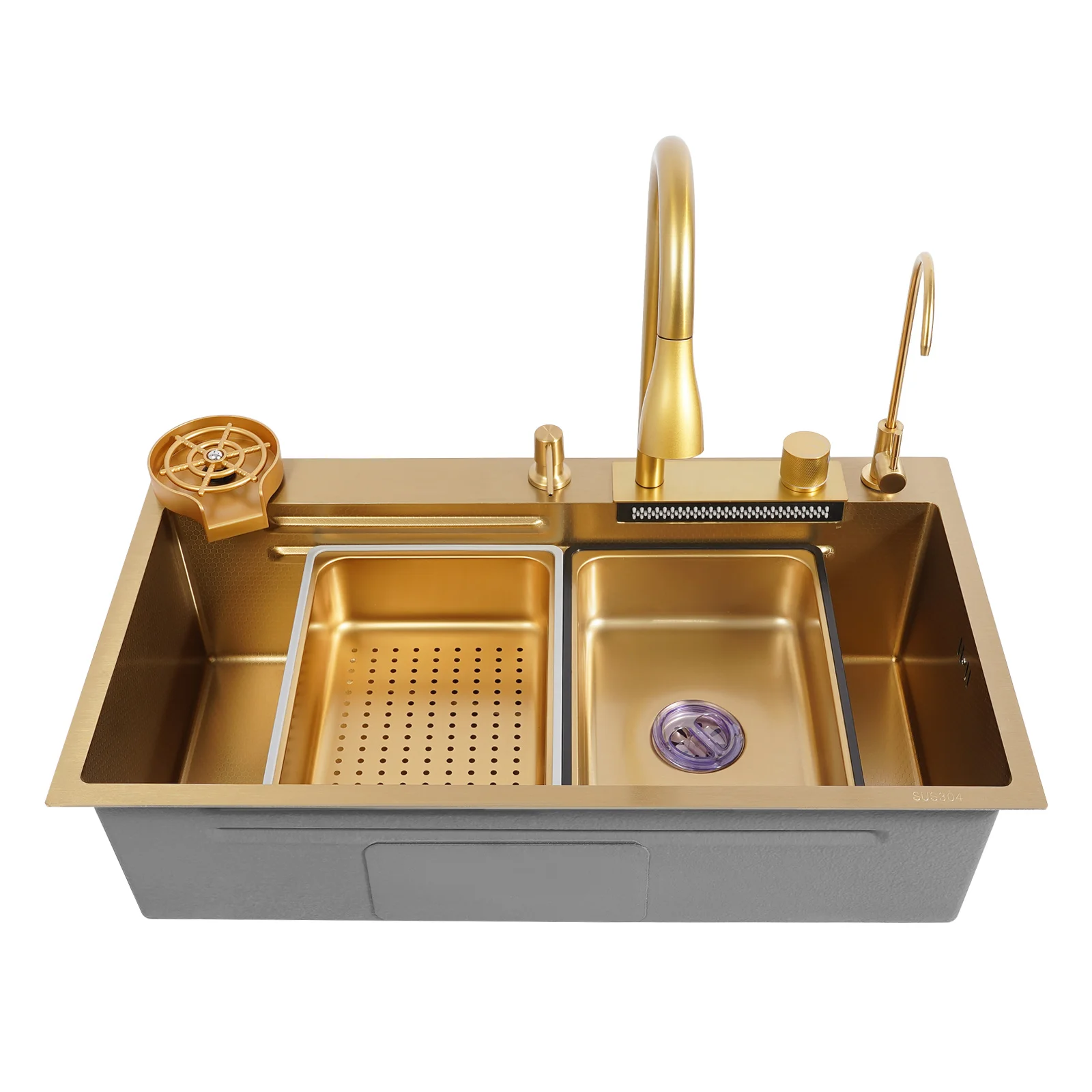 Thoughtful Design: The product adopts silent pads and anti-condensation layers to reduce noise, prevent cabinet moisture, and create a quieter and more hygienic kitchen environment. Moreover, the two holes at the top can be used to install the soap dispenser and cup washer conveniently.