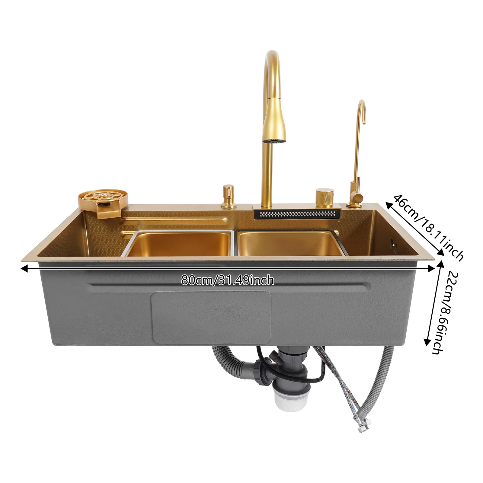 Large Capacity: The large and deep ( 31.5*18.11*8.66 inches) sink allows you to multitask and clean vegetables, fruits, plates, and cookware with ease, improving cleaning efficiency and avoiding splashing.