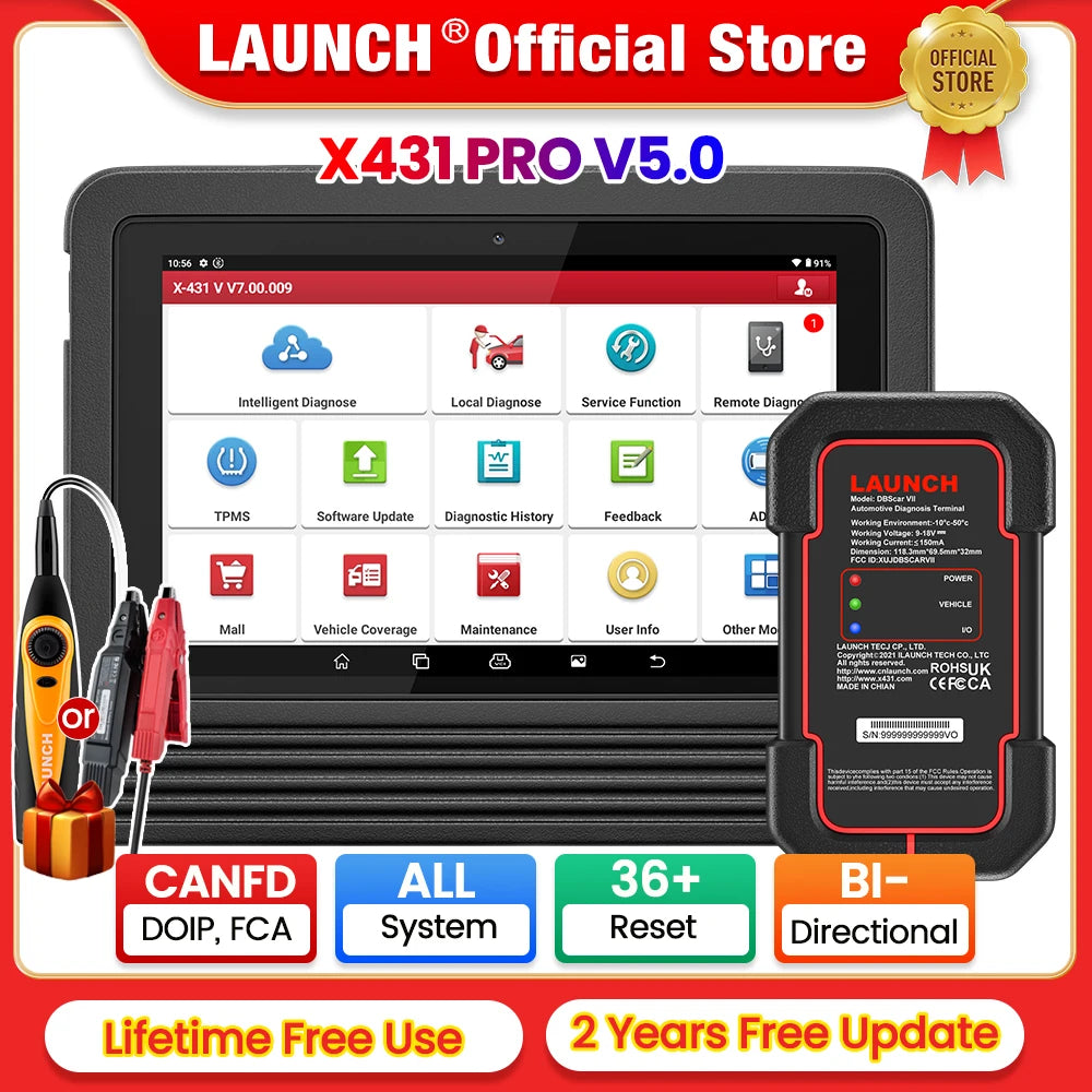 LAUNCH X431 PRO V5.0 Car Diagnostic Tools DBScar VII VCI CAN FD DOIP Auto OBD OBD2 Scanner 38+ Reset ECU Coding Bidirectional