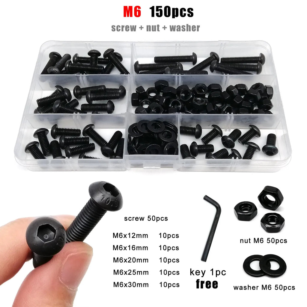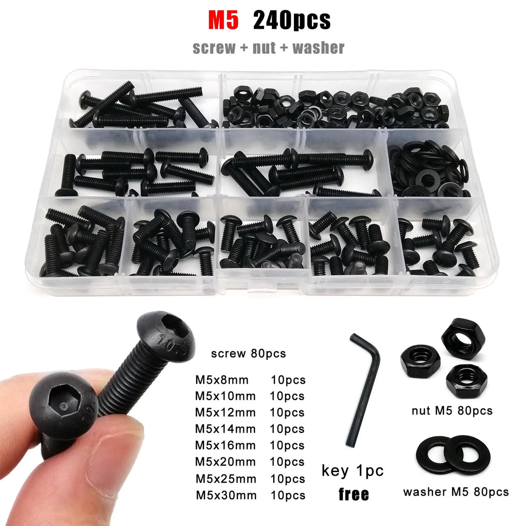 M1.6 M2 M2.5 M3 M4 M5 M6 M8 Black Grade 10.9 Steel Allen Hexagon Hex Socket Button Round Head Screw Bolt Nut Washer Kit Set Box