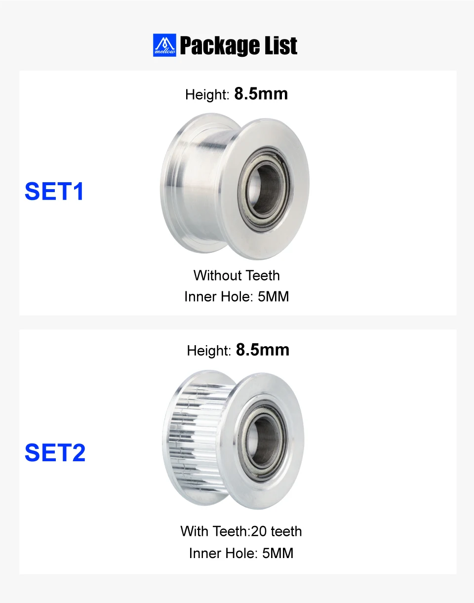 Mellow 1Pcs 20T 8.5MM Height GT2 Idler 20 Tooth Wheel Bore 5mm For High Matching Low Vibration Gates 6MM 2GT Timing Belt