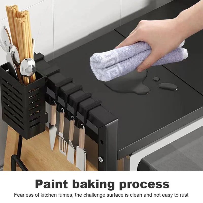 Microwave Oven Rack Seasoning Shelf Bilayer Oven Storage Rack Retractable Countertop Organizer Kitchen Accessories