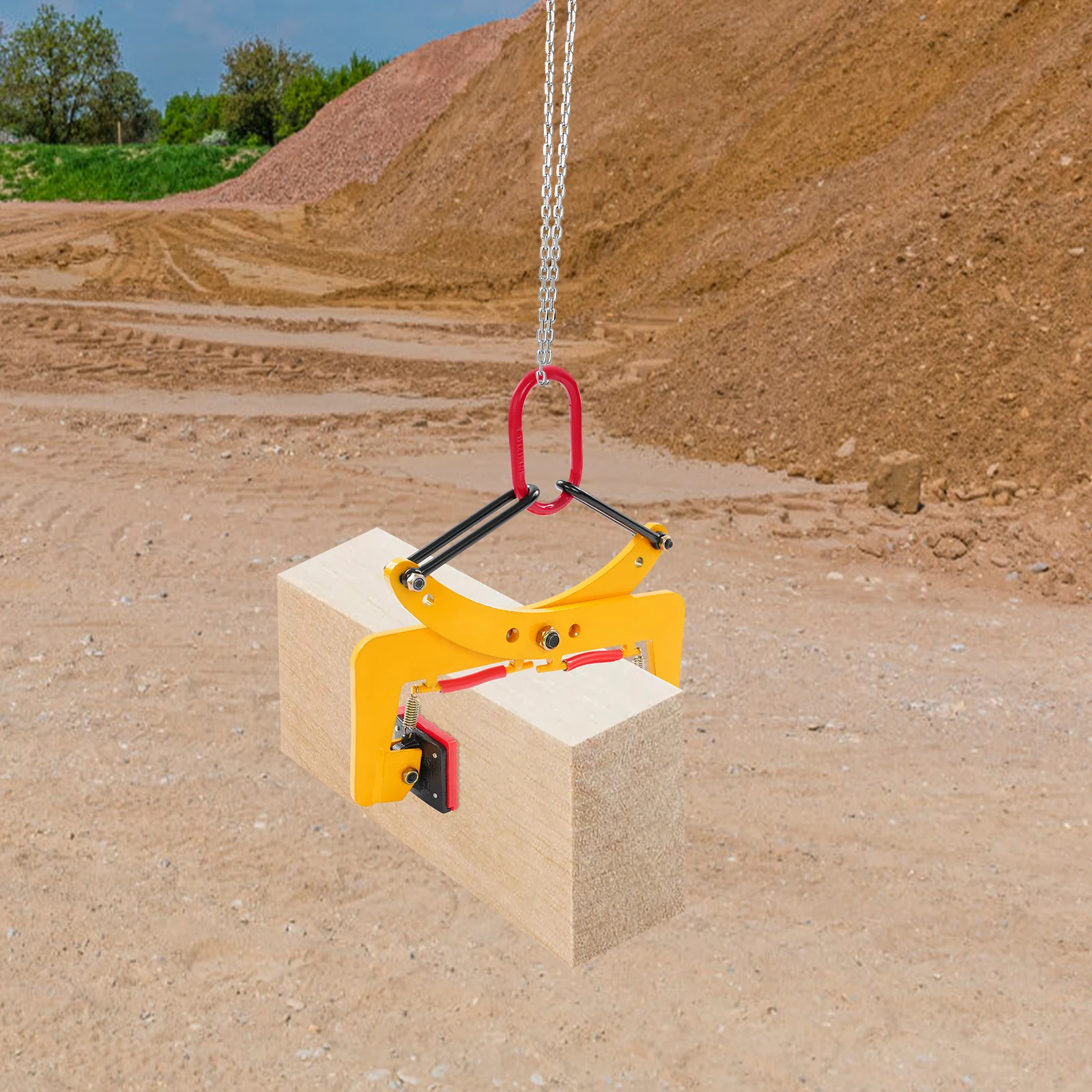 This product can be used in conjunction with cranes and tower cranes to lift materials such as marble, granite slabs, concrete slabs, and wood.