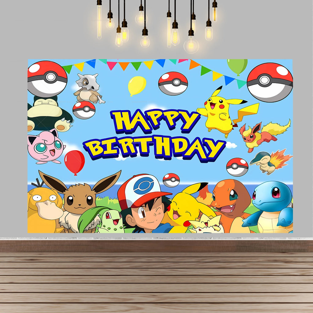 Pokemon Pikachu Birthday Party Backdrop Cartoon Baby Shower Background Photography Wall Photo Studio Banner Decor For Boy Gift