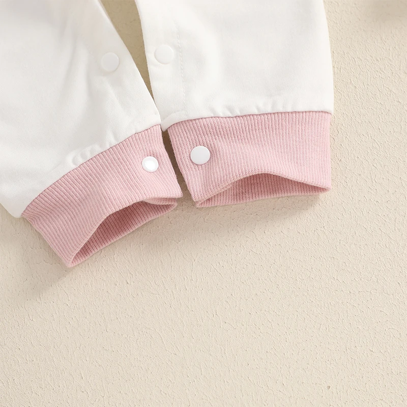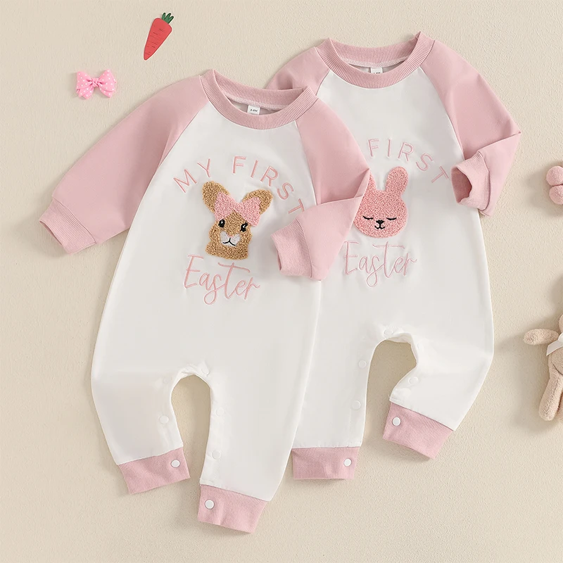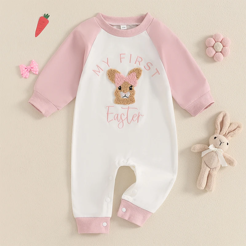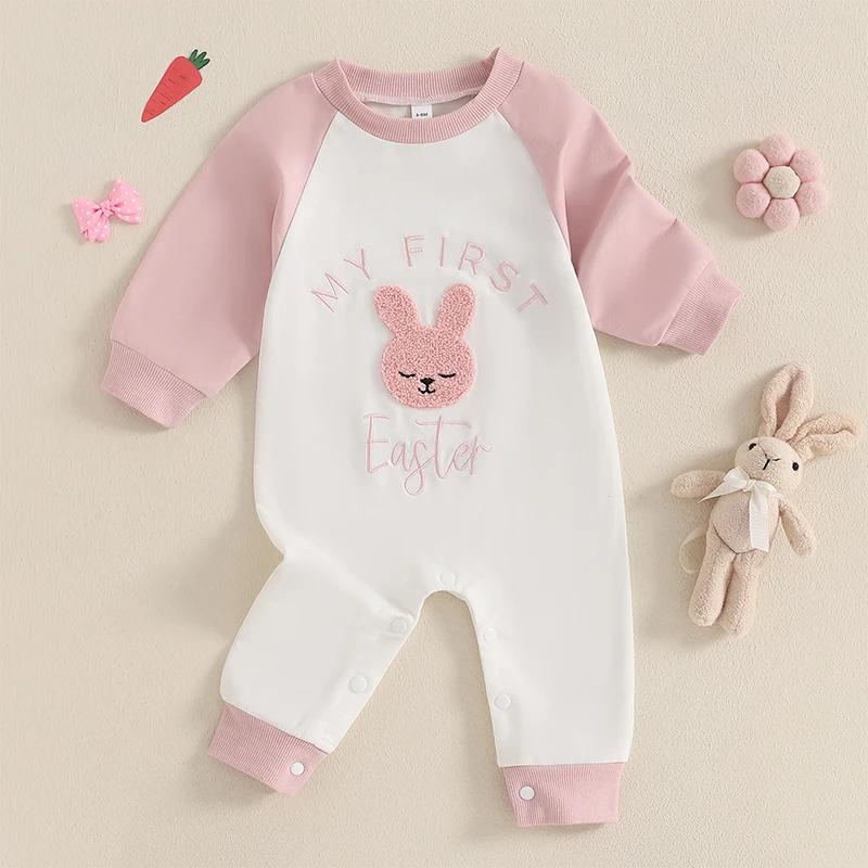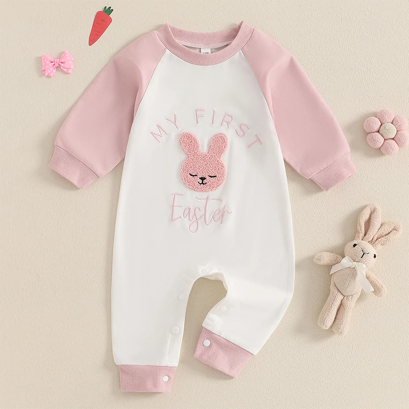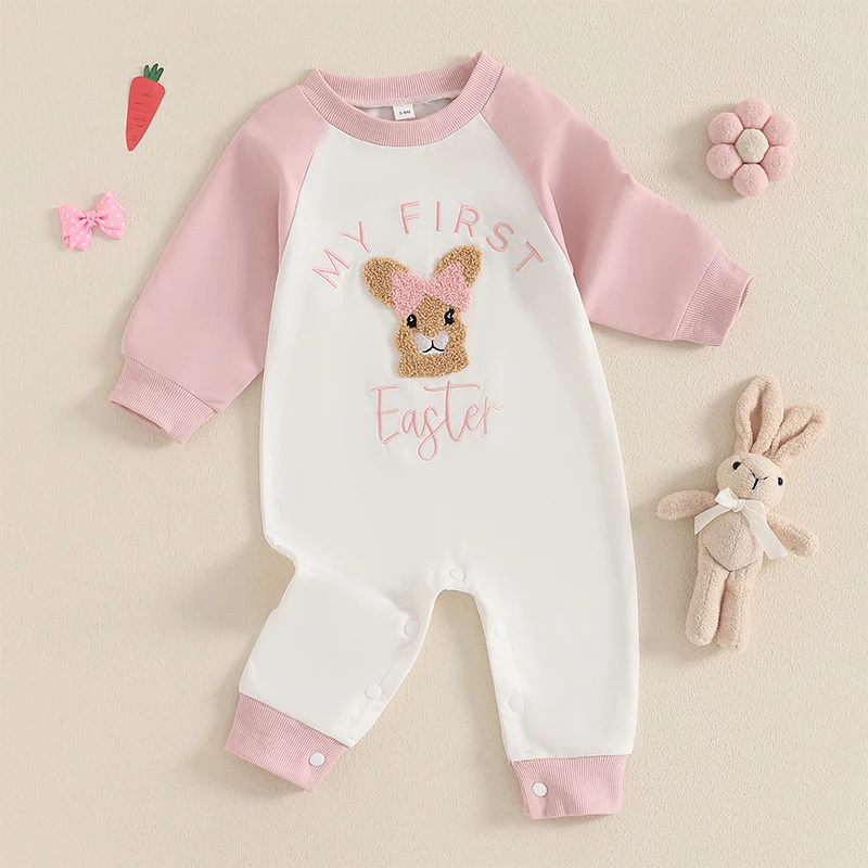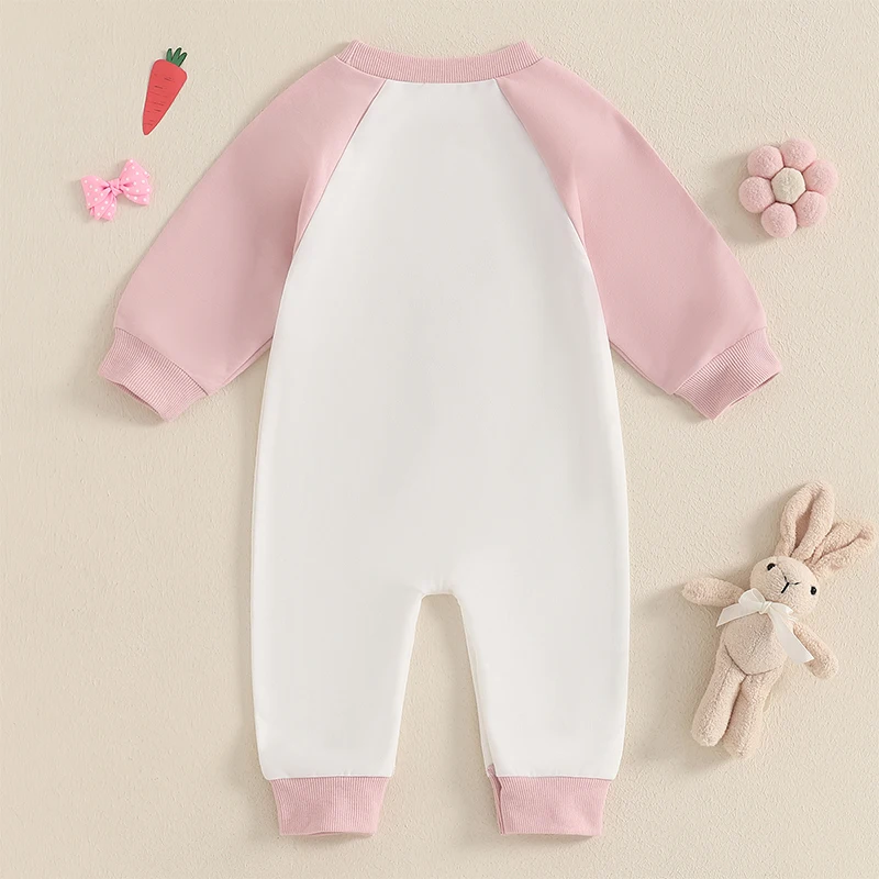 Baby Girl Easter Casual Jumpsuit Long Sleeve Round Neck Letter Bunny Embroidery RomperSize (cm)