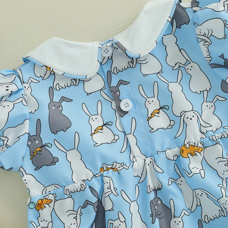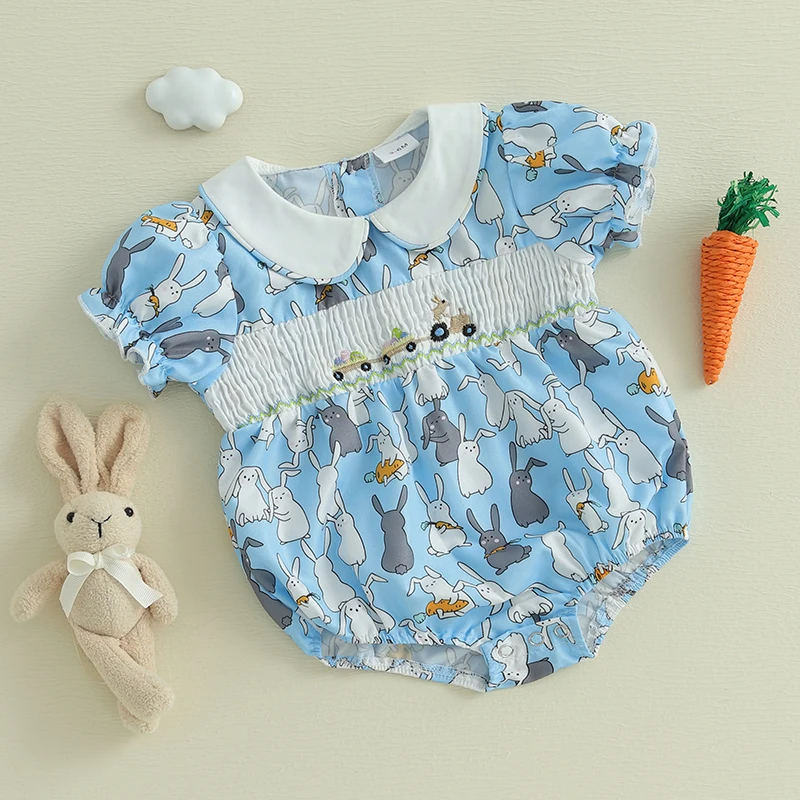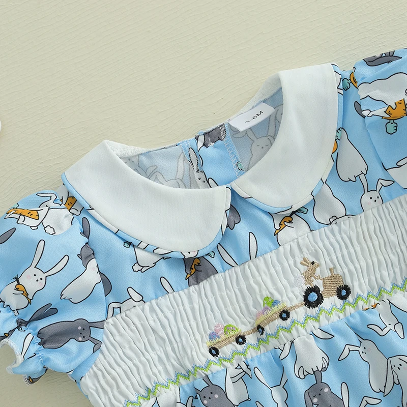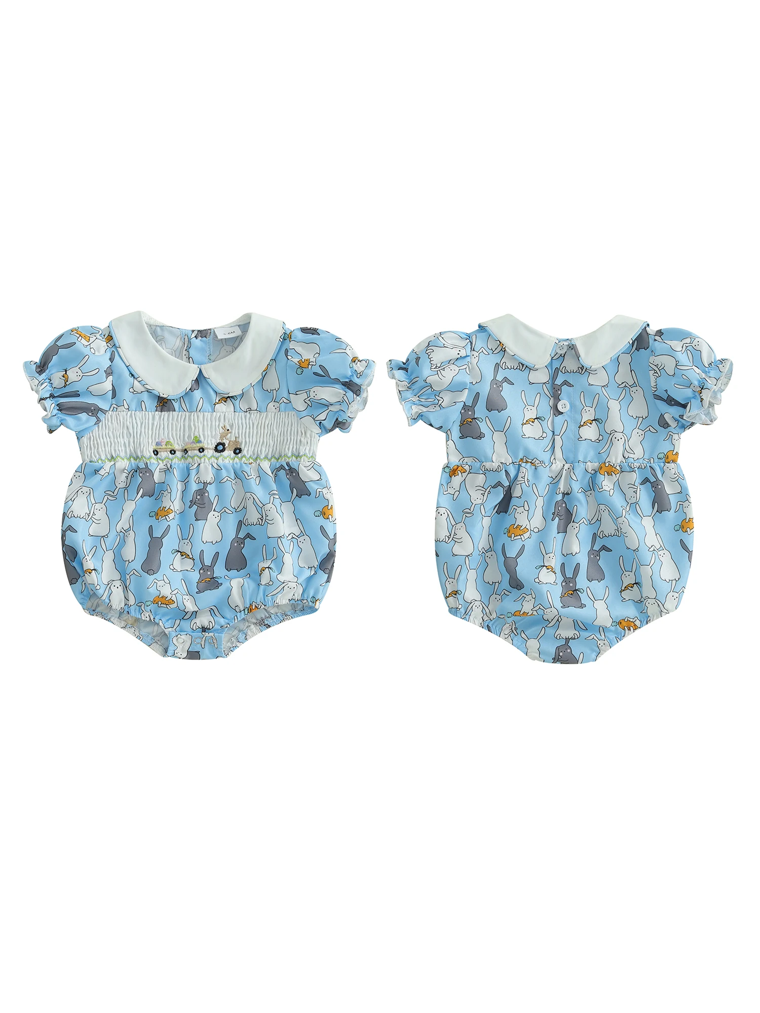 Baby Girls Rompers Easter Clothes Rabbit Print Doll Collar Short Sleeve Summer Bodysuits Jumpsuits