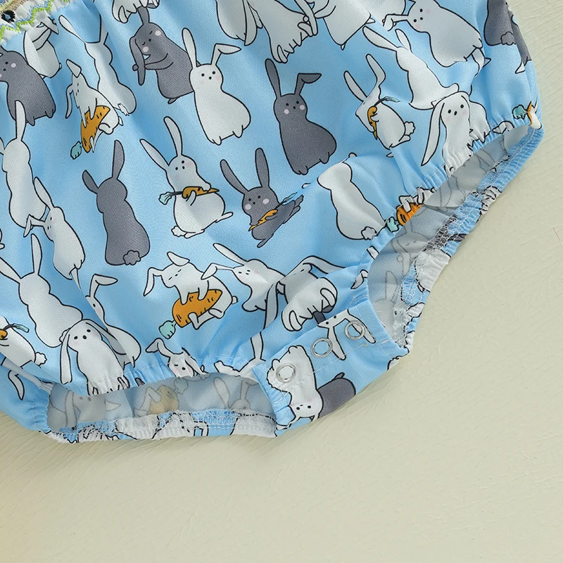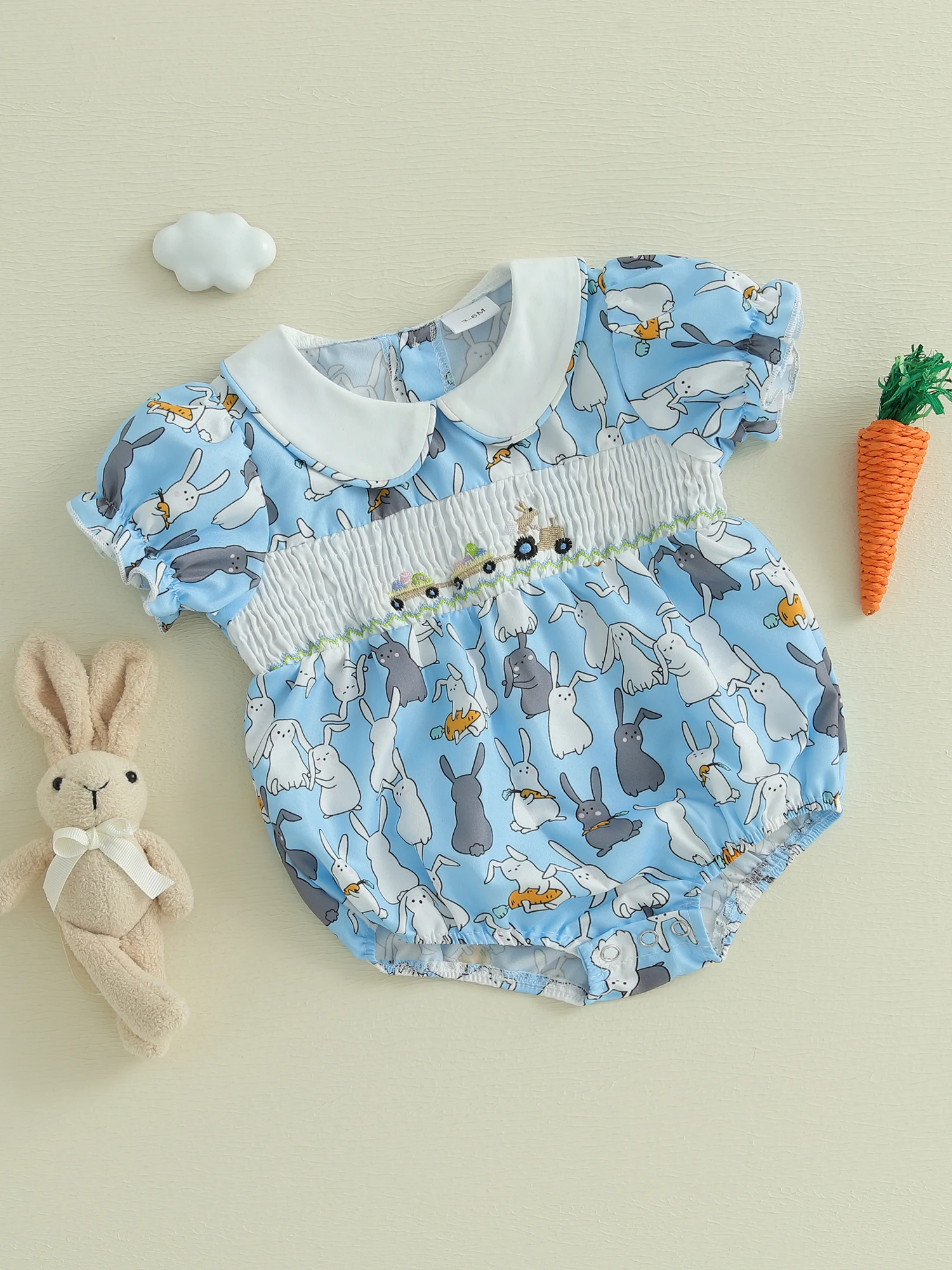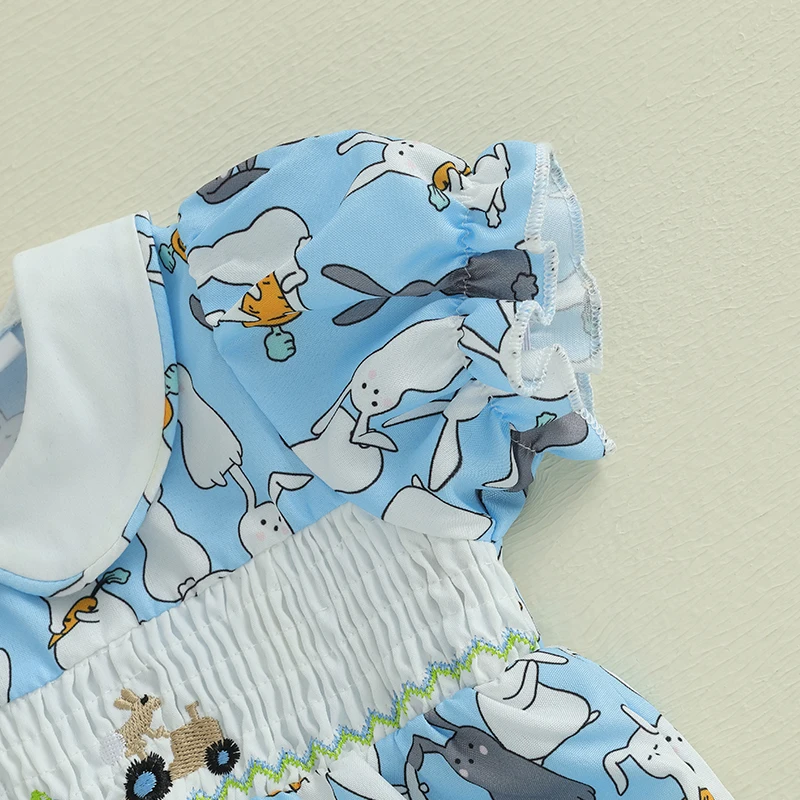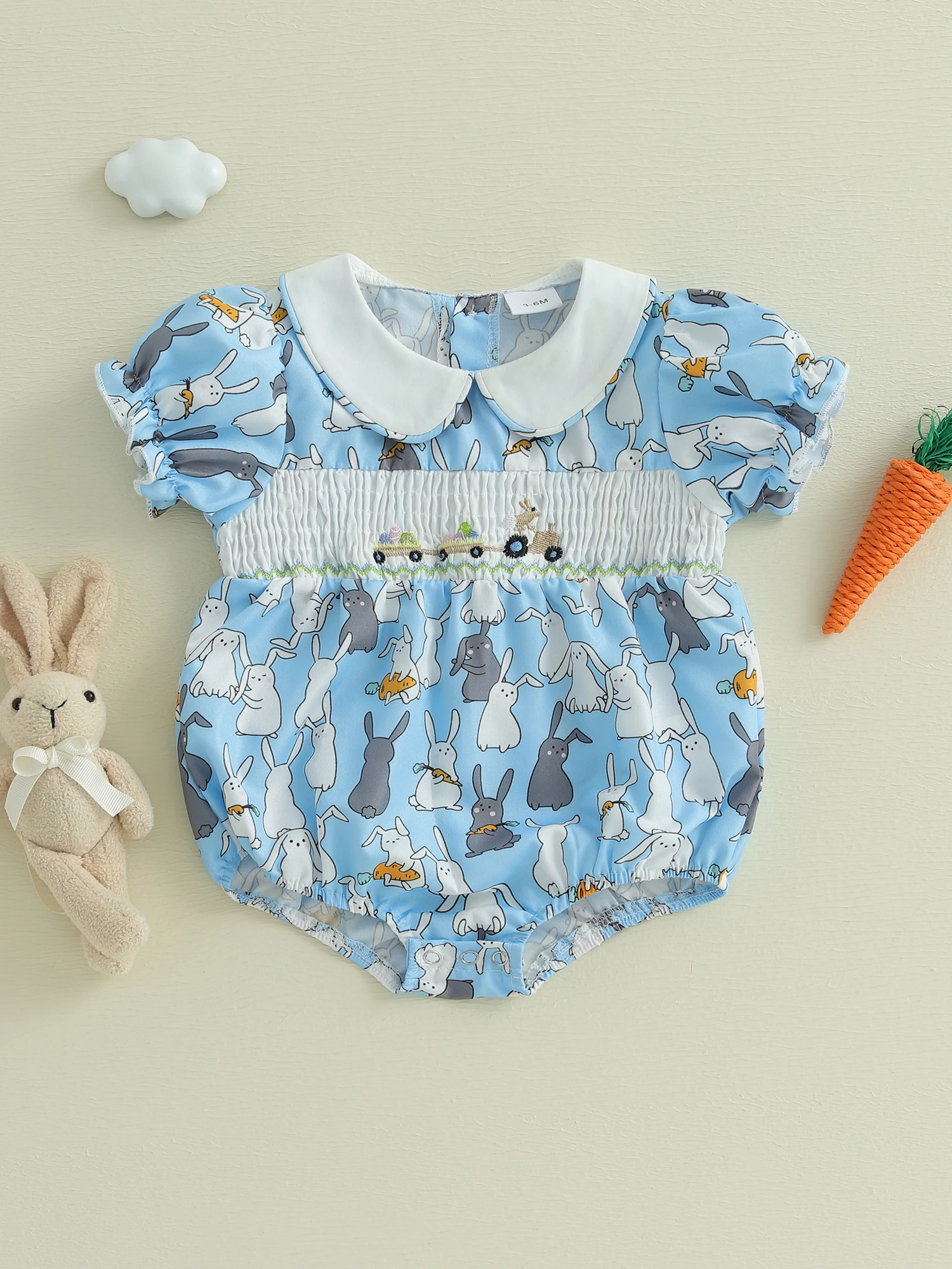Baby Girls Rompers Easter Clothes Rabbit Print Doll Collar Short Sleeve Summer Bodysuits Jumpsuits