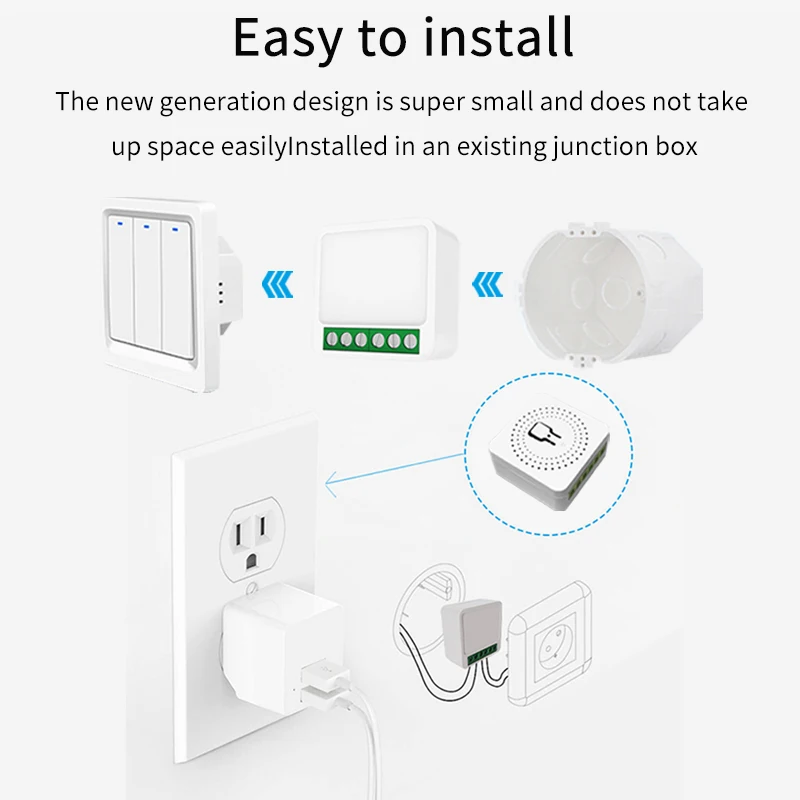 Tuya Smart WiFi Mini Smart switch Module Two-Way Control DIY Light Switch Voice Control, Compatible with Smart Life Alexa, Alice