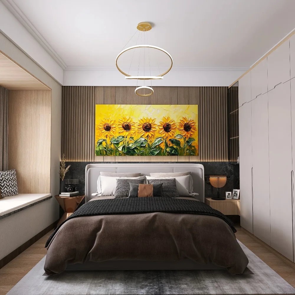 Vibrant sunflower canvas art - "Summer Messenger" warm greetings, 1.5 inch thick pine frame, interior decoration