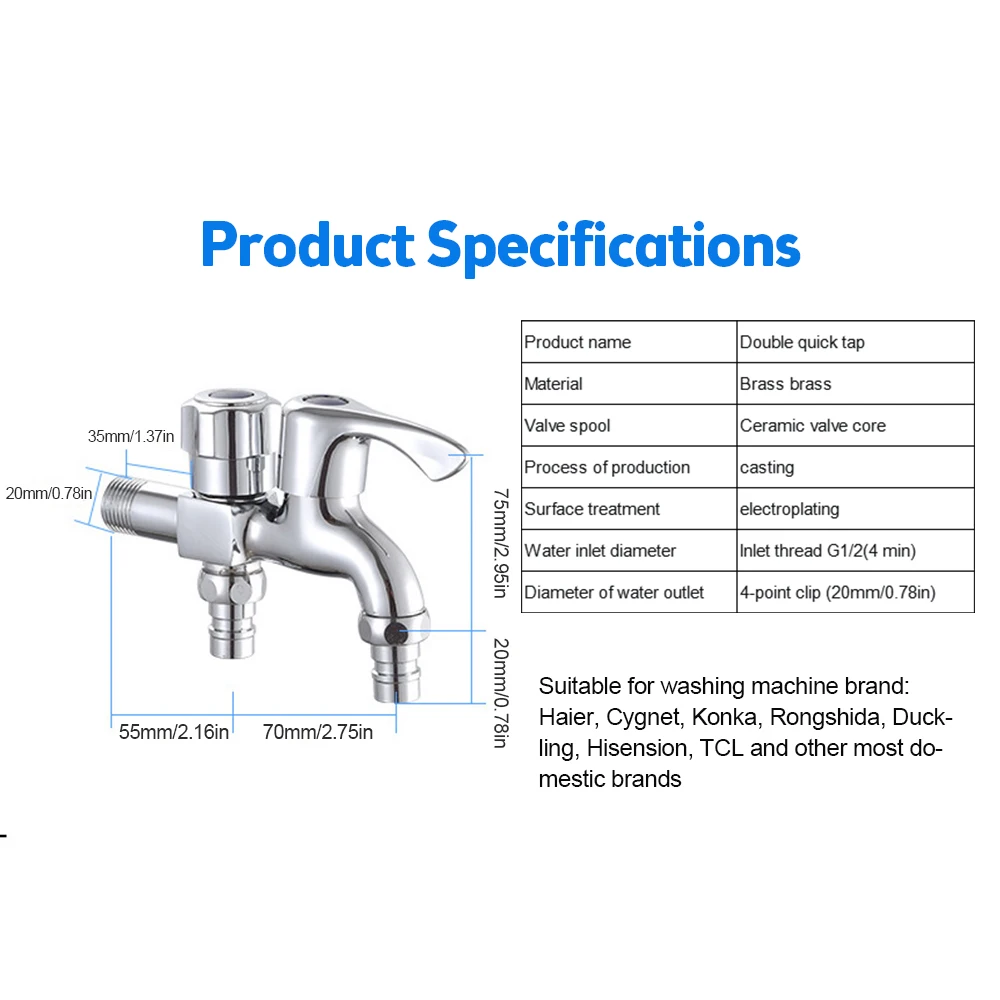 Washing Machine Faucet Double Water Outlet Mop Pool Brass Tap Outdoor Garden Faucet Fast Bidet Faucets Bathroom Accessories