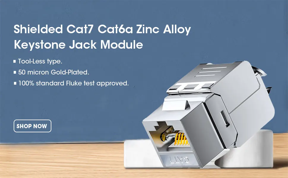 ZoeRax Shielded Cat8 Cat7 Cat6a Keystone Jack RJ45 Tool-Less Type Zinc Alloy Module Adapter Coupler