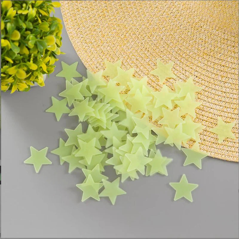 100Pcs Luminous 3D Stars Glow In The Dark Wall Stickers For Kids Baby Rooms Bedroom Ceiling Home Decor Fluorescent Star Stickers