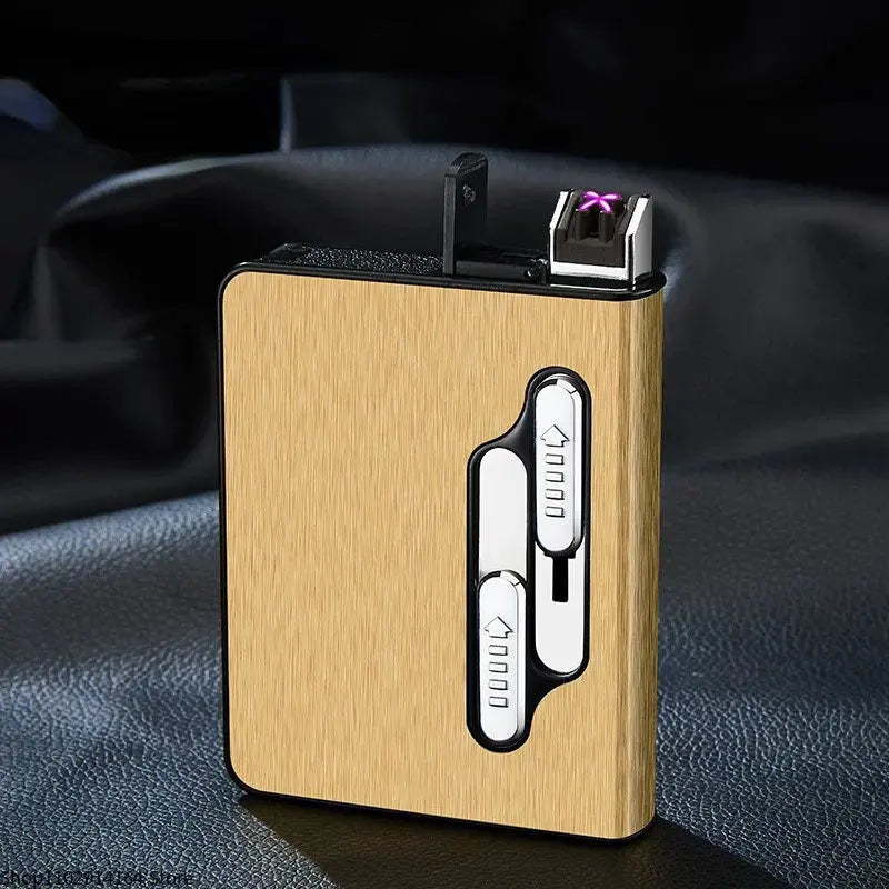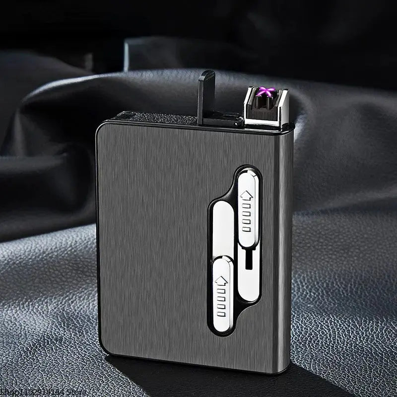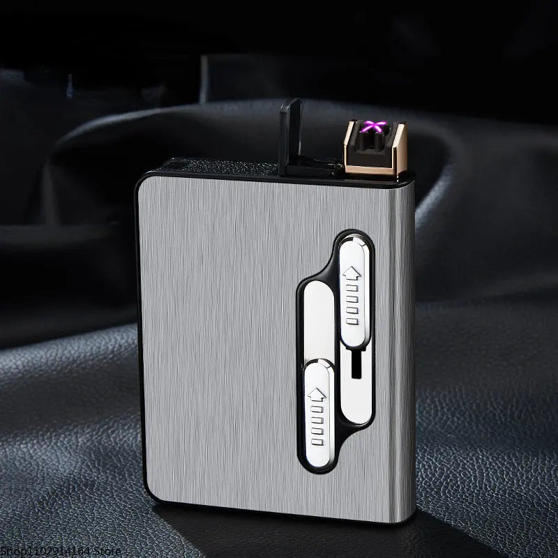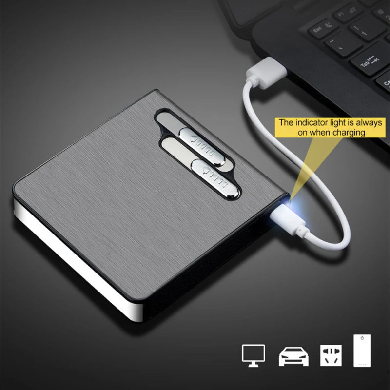 10pcs 20 Large-capacity Cigarettes USB Rechargeable Cigarette Case Lighter Double Arc Moisture-proof Lighter Gift for Men