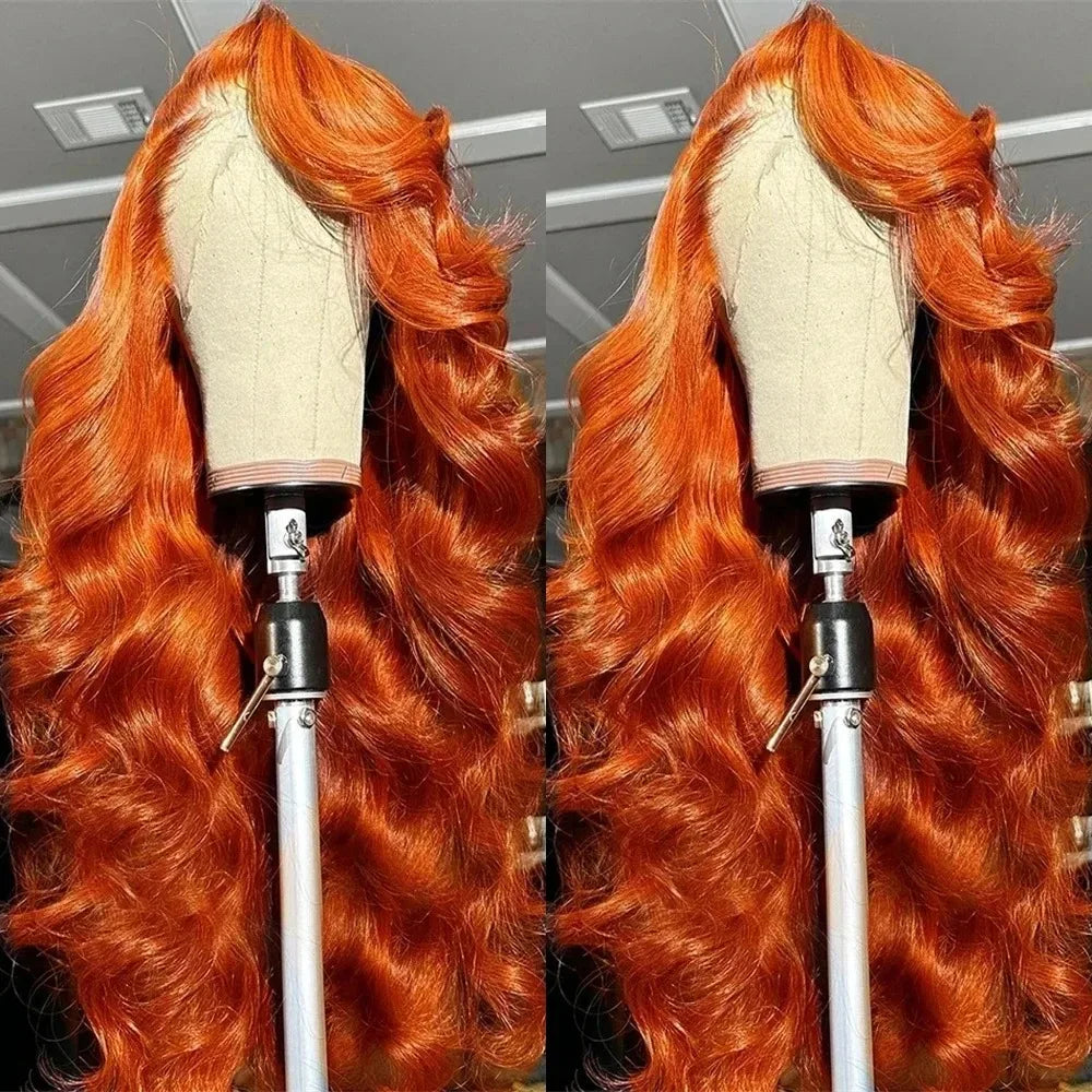 30 40 Inch Orange Ginger Body Wave Human Hair Wigs 13x6 HD Lace Frontal 350 Colored Water Wave Wig Brazilian Preplucked Raw Hair