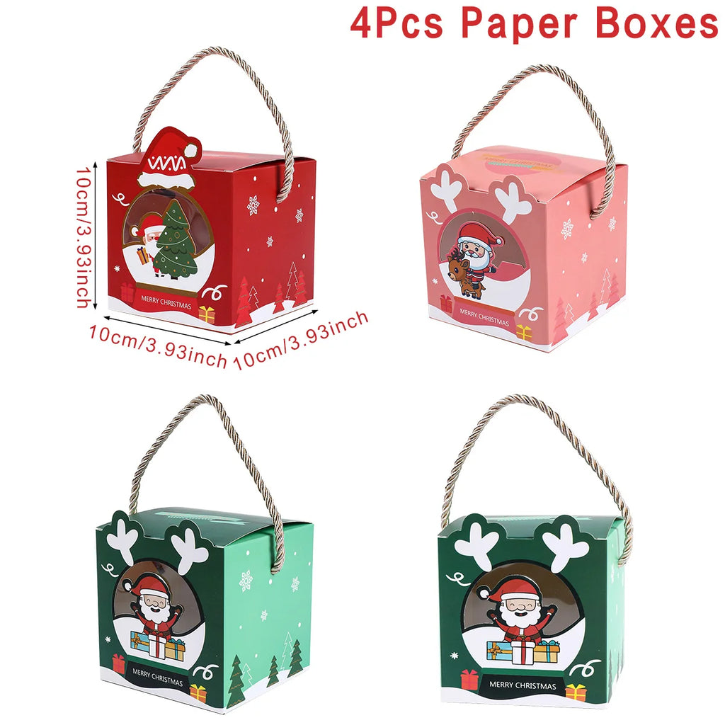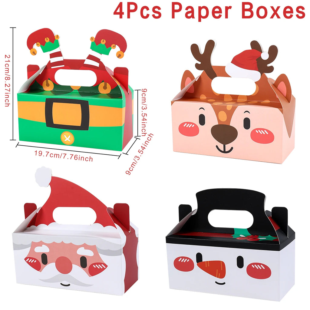 4pcs Santa Snowman Christmas Candy Boxes Merry Christmas Decor For Home 2024 Xmas Gifts Box Navidad New Year Packging Bags