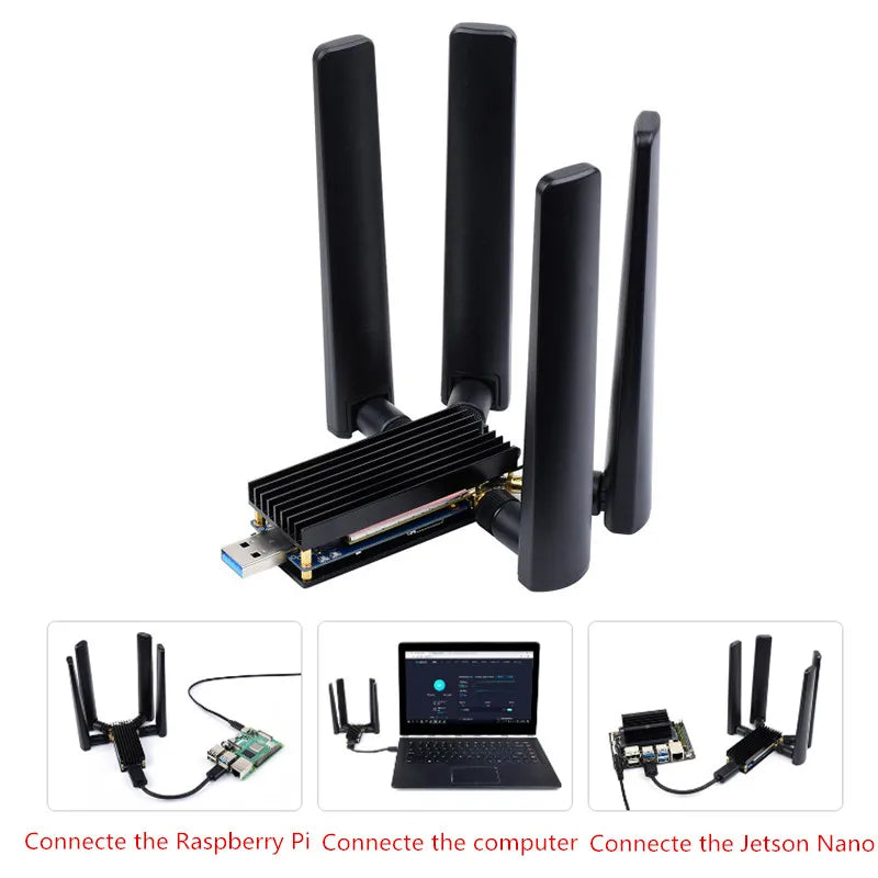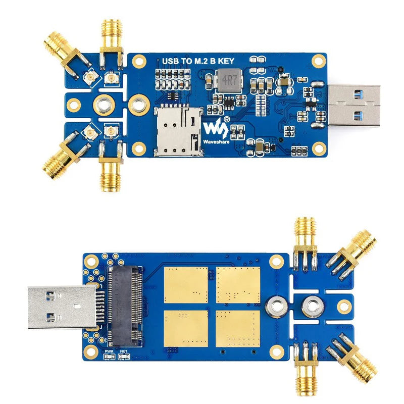 5G Dongle Expansion Board USB 3.1 to M.2 Key B Port Aluminum Cooling Plate with Interface 4 Antennas for Raspberry Pi 4 Windows