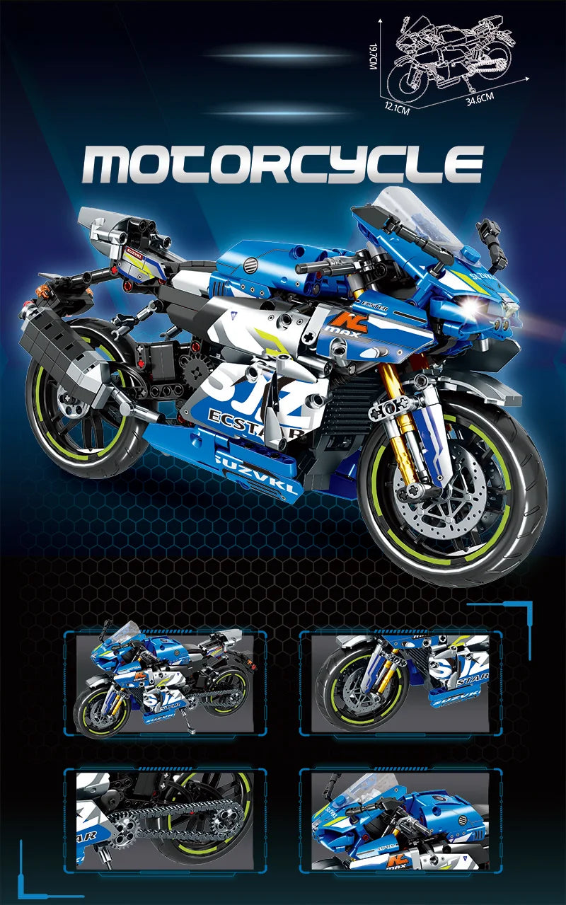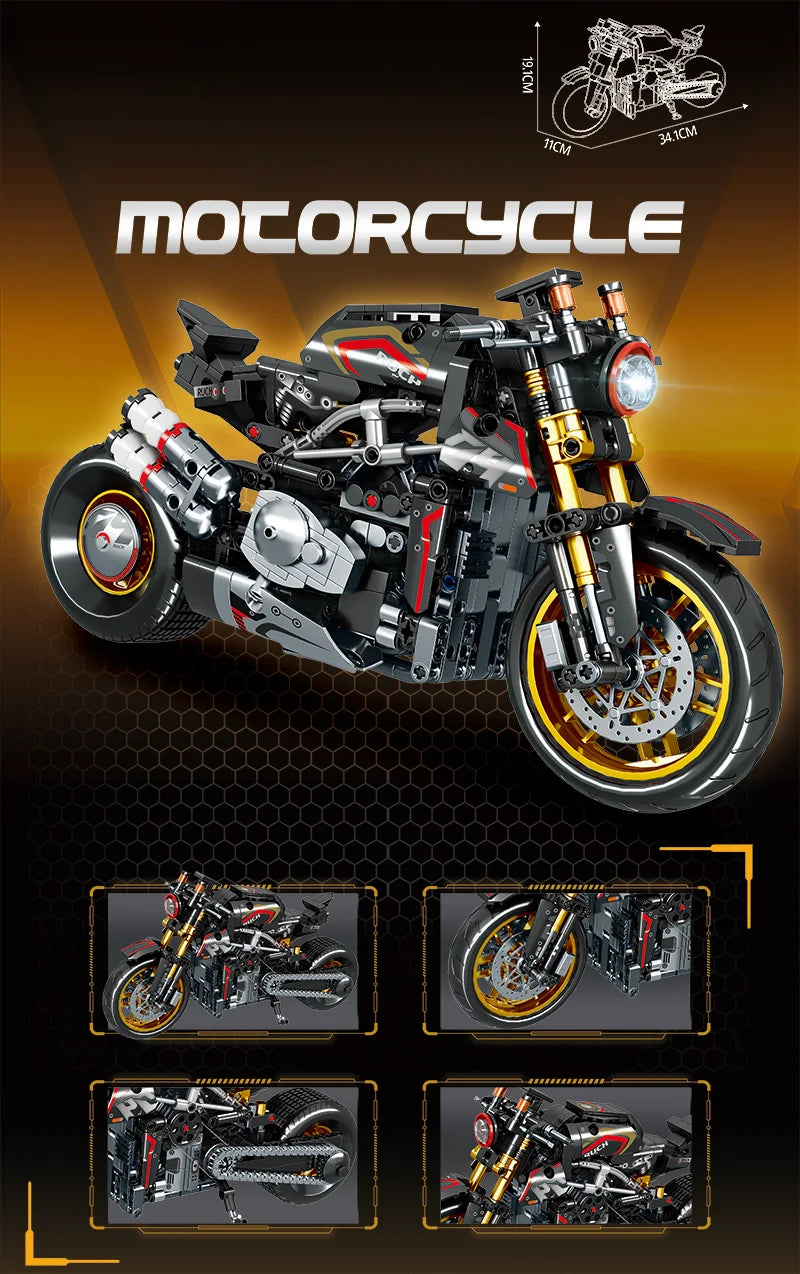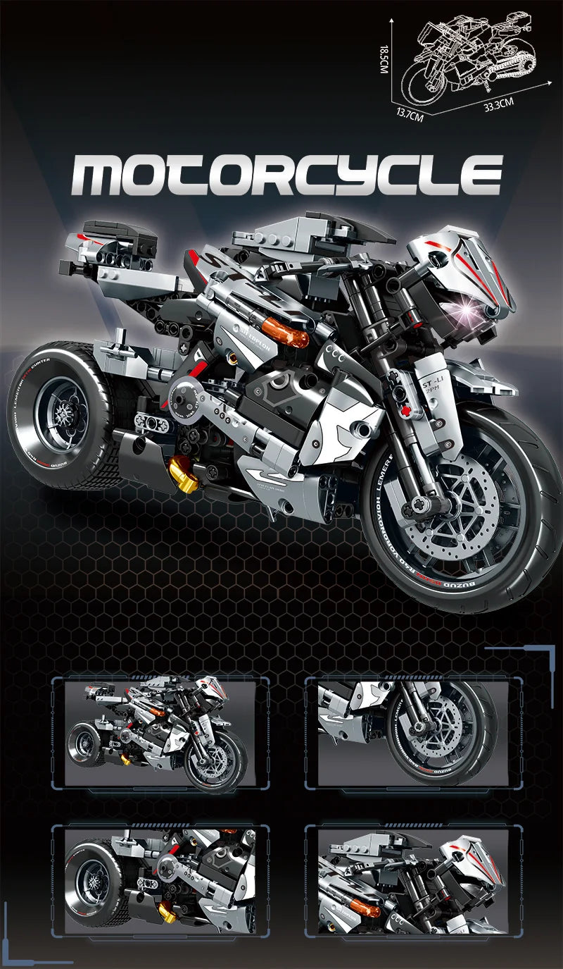 800+Pcs High-tech Classic Motorbike Building Model Blocks City Road Racer Bricks Moto Christmas Gifts Toys for Kid Boys Adult