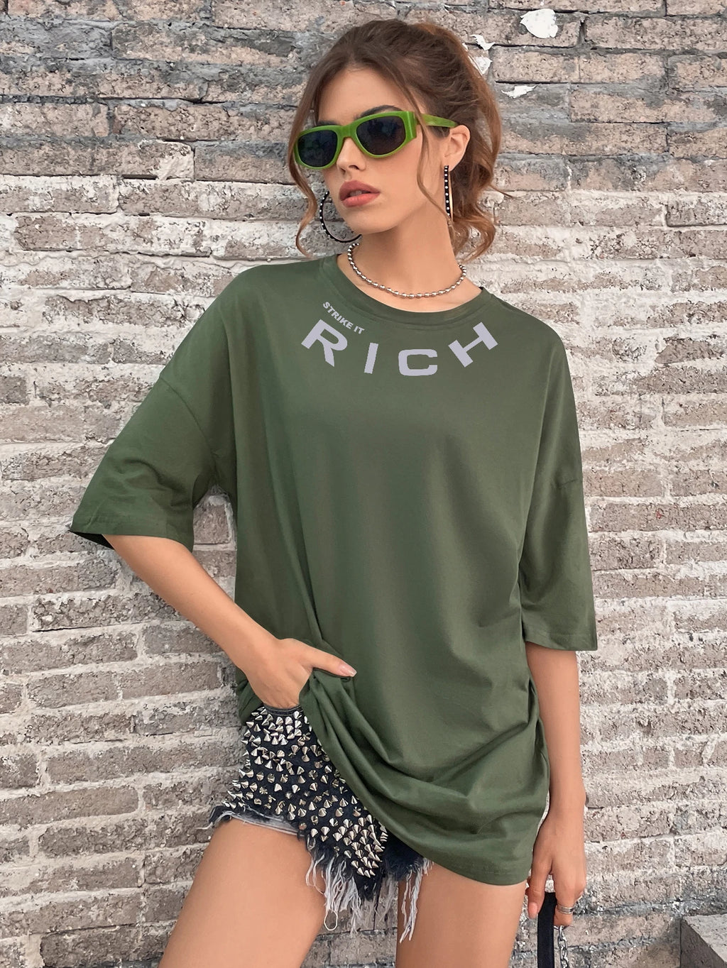 American Personality Letter Print T-Shirts Female Summer Cotton Clothing Loose Fashion Short Sleeve O-Neck Hip Hop Tee Shirts