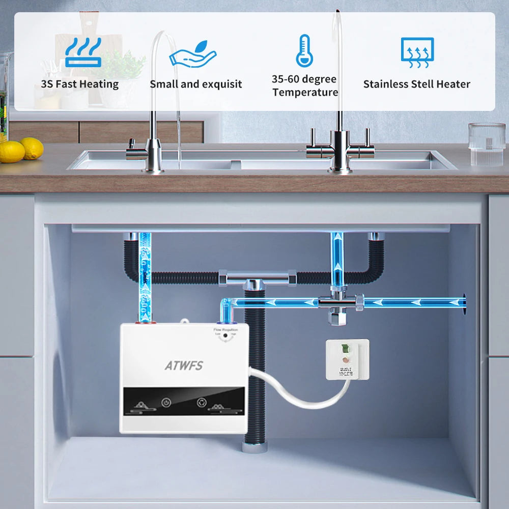 ATWFS 220V 4600W Instant Water Heater Electric Heaters for Bathroom Hot Water Shower Home Kitchen Heating