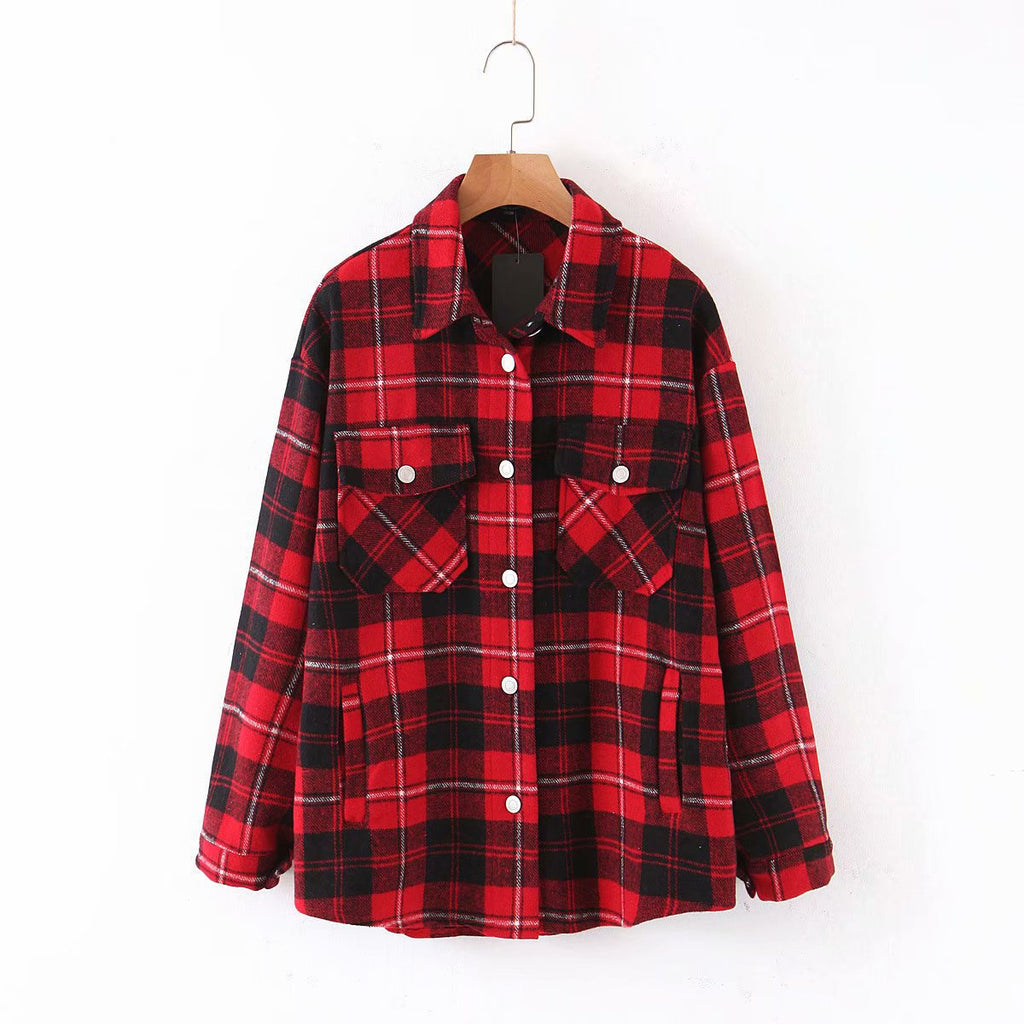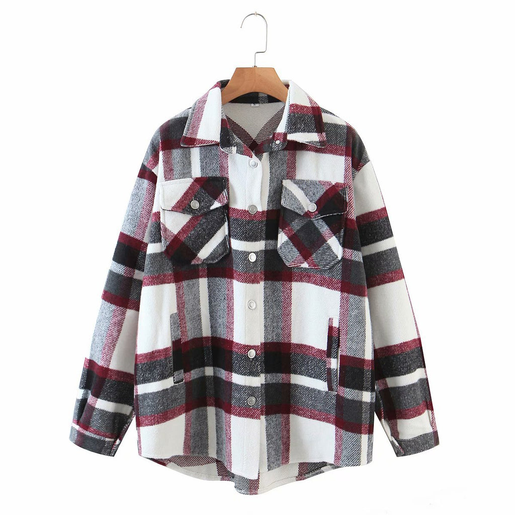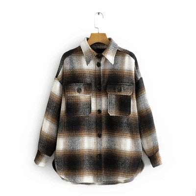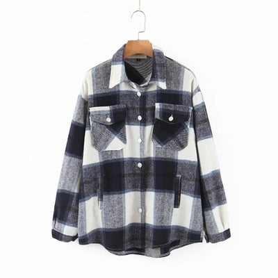 Autumn Winter Plaid Jackets Wool Blend Coat Fashion Button Thick Vintage Casual Office Warm Overshirt Ladies Outwear Chic Tops