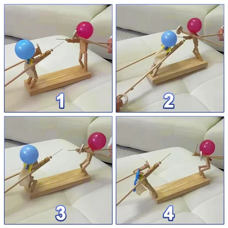 Engage in thrilling duels with handmade bamboo fencing puppets for an adrenaline-pumping balloon fight.