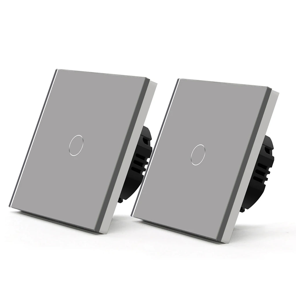 BSEED 2Pack Light Switches Wall Touch Switches 1Gang 2Way LED Sensor Tempered Glass Interrupter EU Standard Blue Backlight 240V