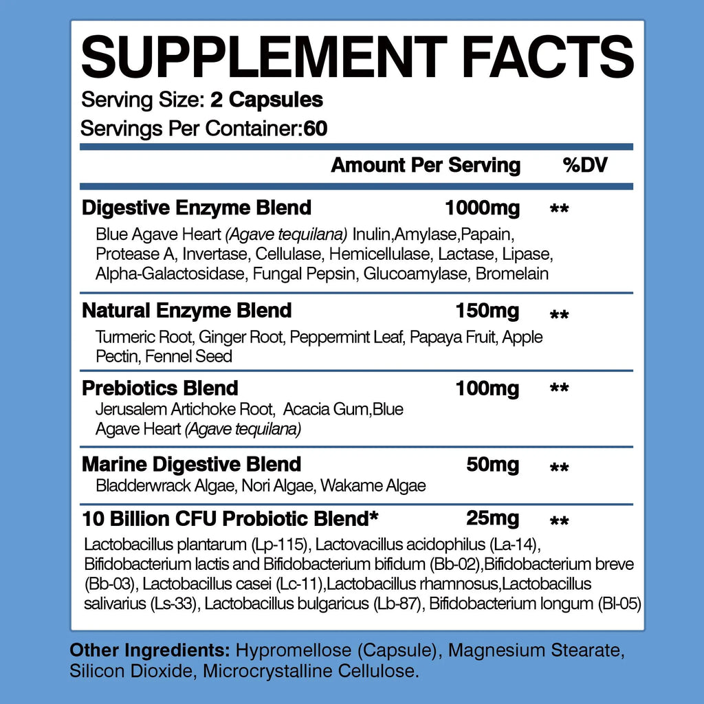 Digestive Enzymes + Probiotics + Prebiotics: Convenient 3-in-1 gut support solution for relief from occasional bloating, gas, and discomfort from hard-to-digest foods.