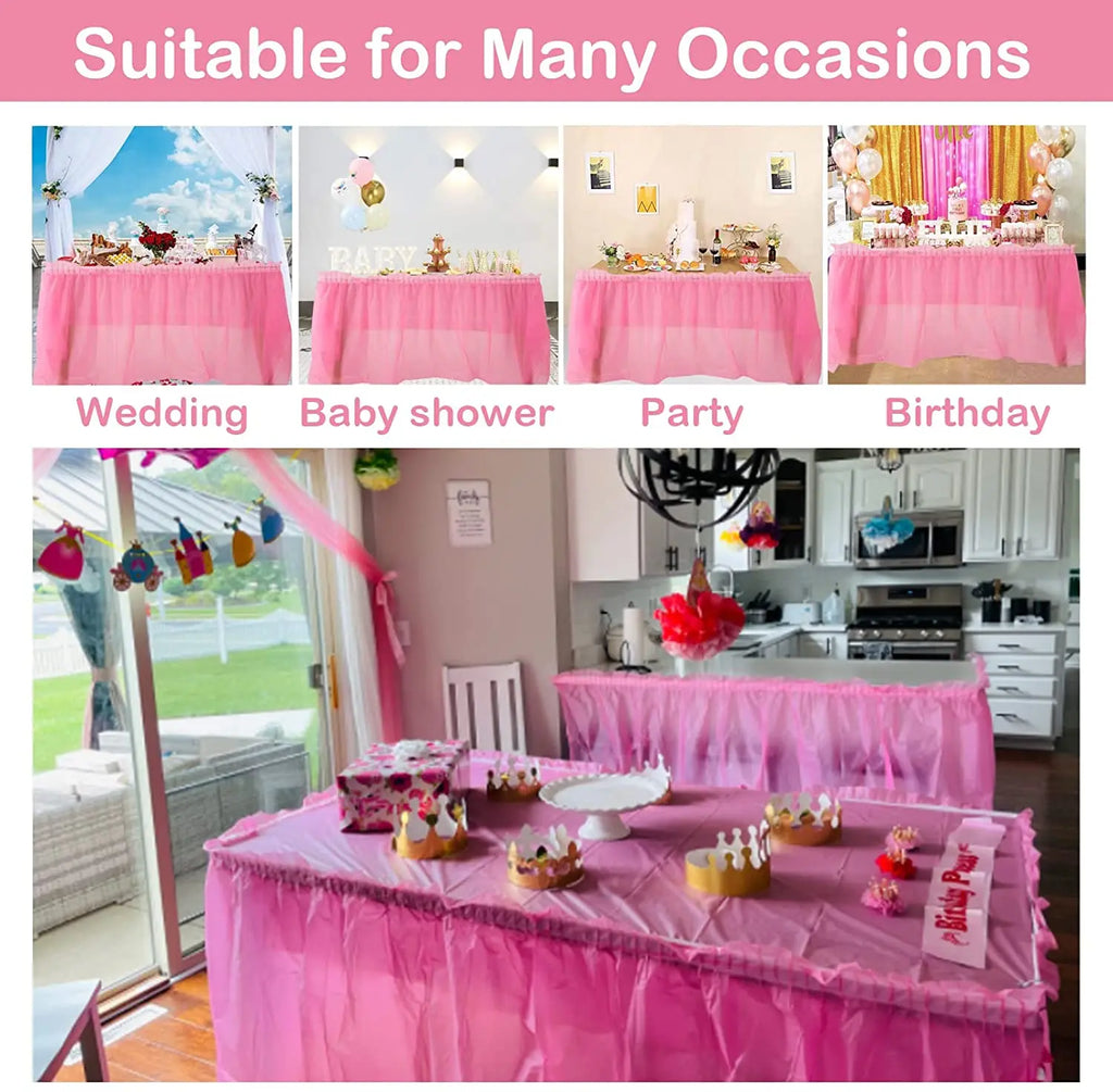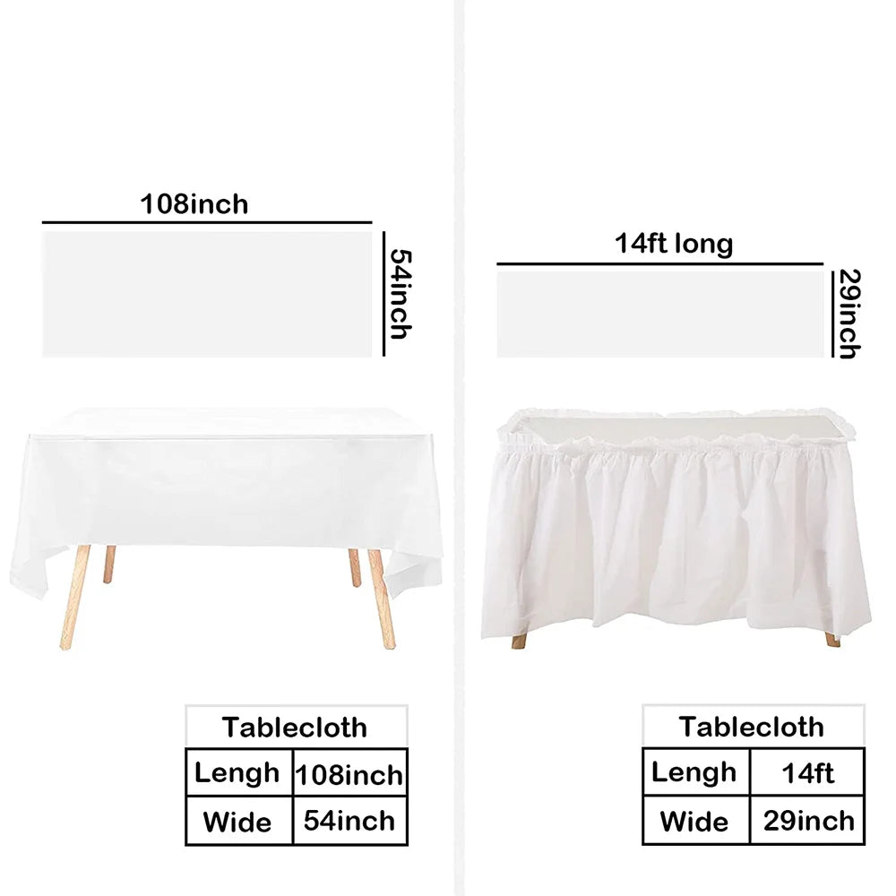 Disposable Table Skirts with Tablecloth Ruffled Plastic Table Skirt for Wedding Party Birthday Business Events Baby Shower White