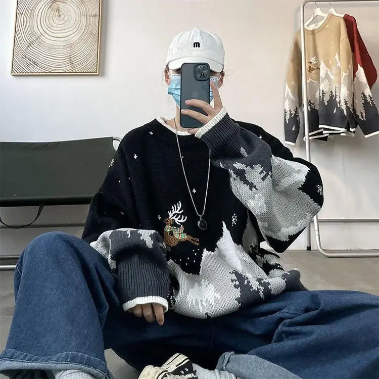 Elk Christmas sweater design restoring ancient ways American high street male qiu dong season and thicken celebrity sweater coat