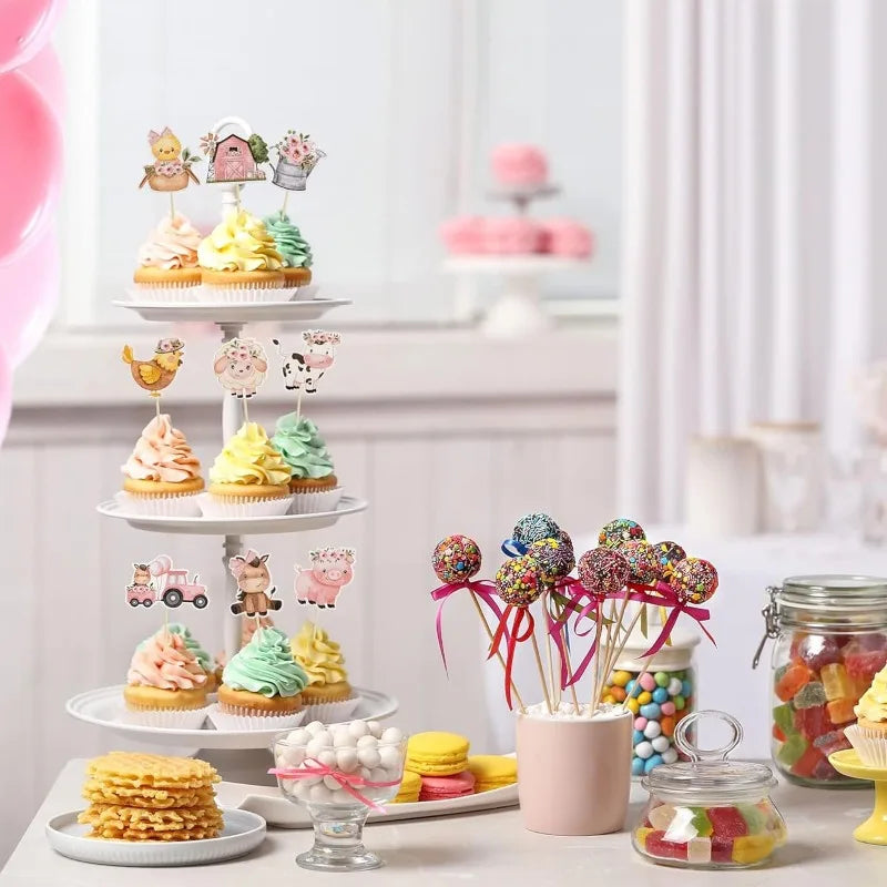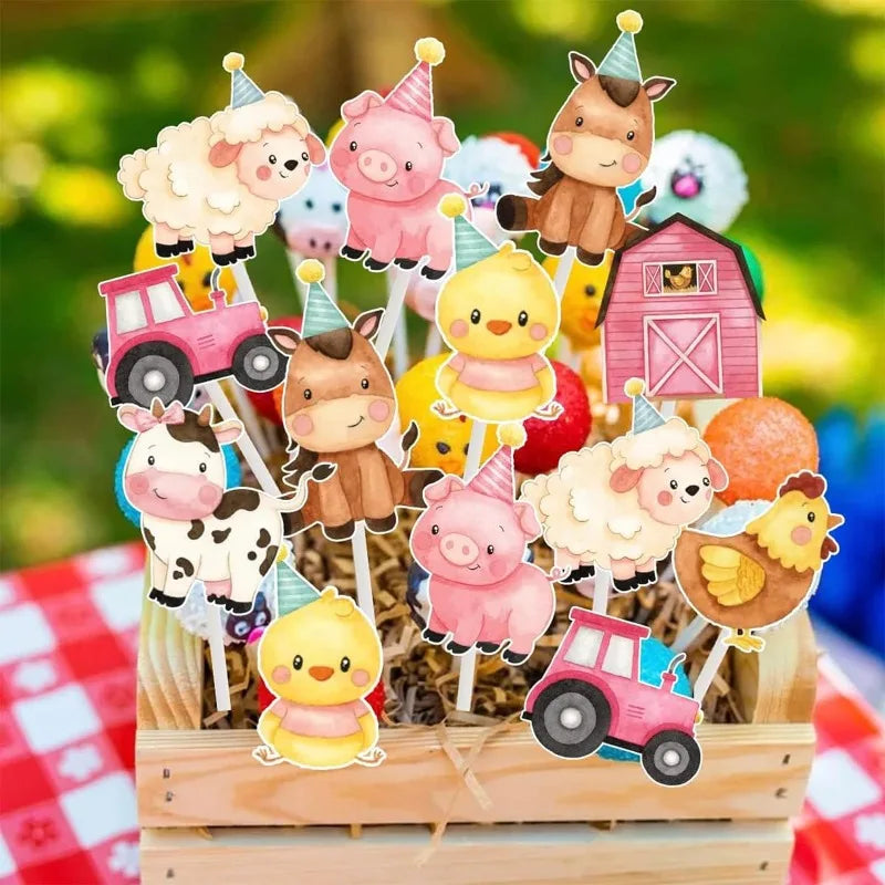 Farm Animal Cupcake Toppers Birthday Cake Decorations Pink Farm Happy Birthday Cake Topper Baby Showers Supplies