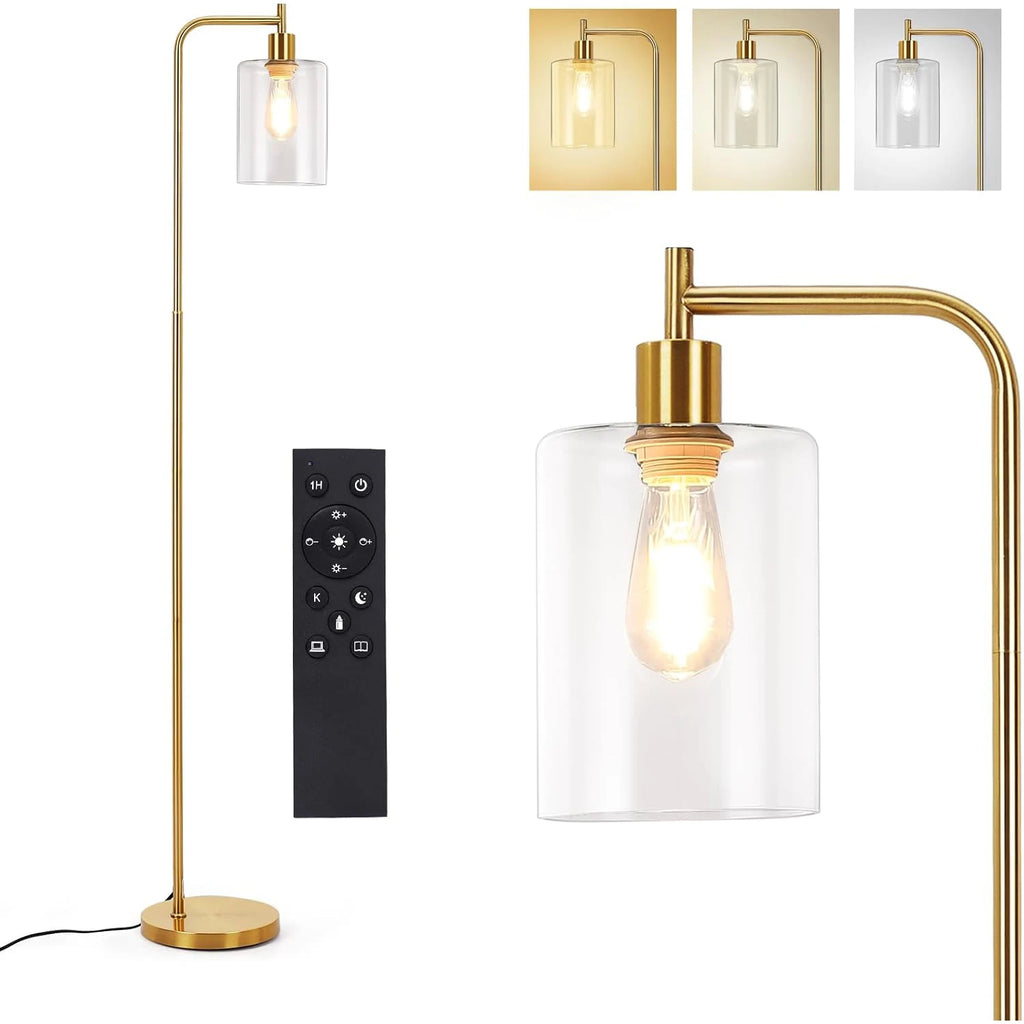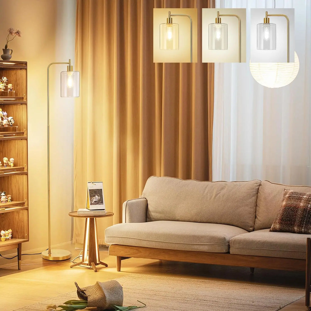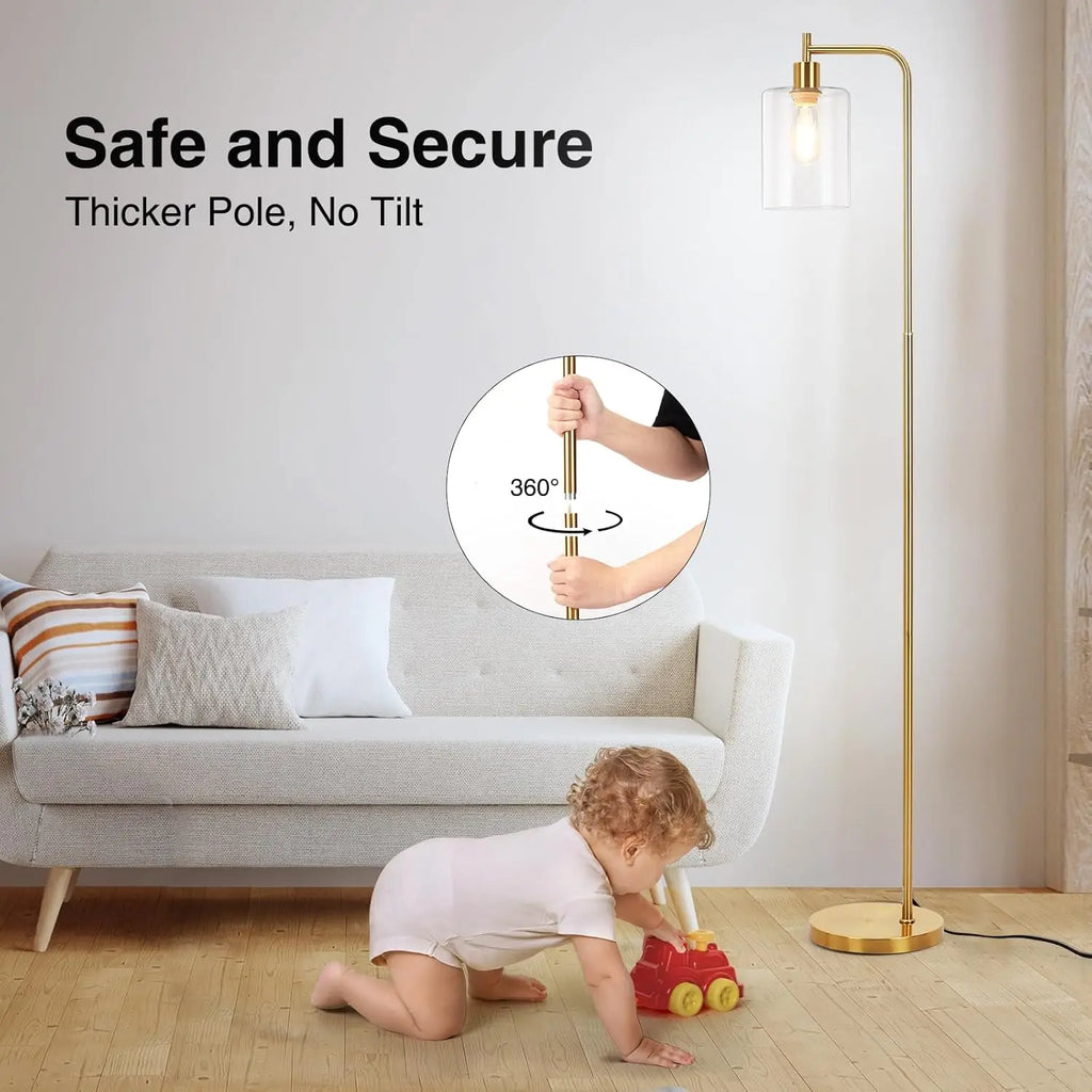 Floor Lamp Living Room, Modern Industrial Floor Lamp Bedroom Dimmable with Clear Glass Shade