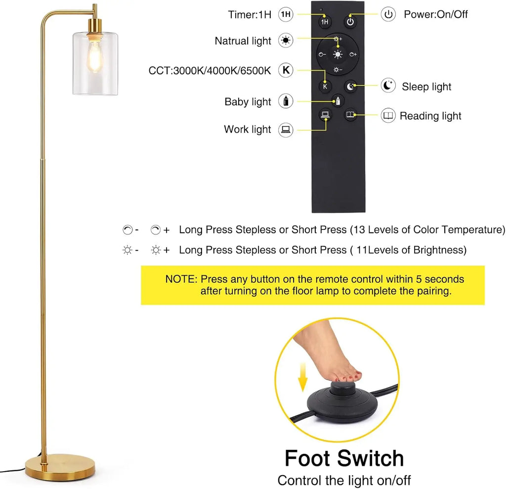Foot switch and remote control: this LED floor lamp bedroom comes with remote control and foot switch to provide additional comfort and flexibility. The remote control offers multiple lighting modes that can be easily adjusted with just one push of a button. Whether for reading, working, relaxing or setting the timer, you can adjust the light according to your preferences.