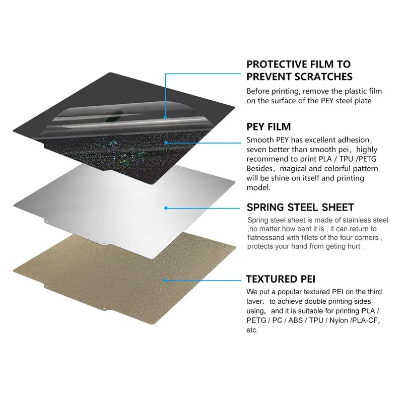 PEI sheet 235x235 is perfect for Creality Ender 3/Ender 3 V2/Ender 3 Pr/Ender 5/Ender 5 Pro/CP-01/Cr-20/Cr 20 Pro/Voxelab Aquila ELEGOO Neptune 3 Pro/Neptune 4/Neptune 4 PRO /Flashforge Adventure 5M;
