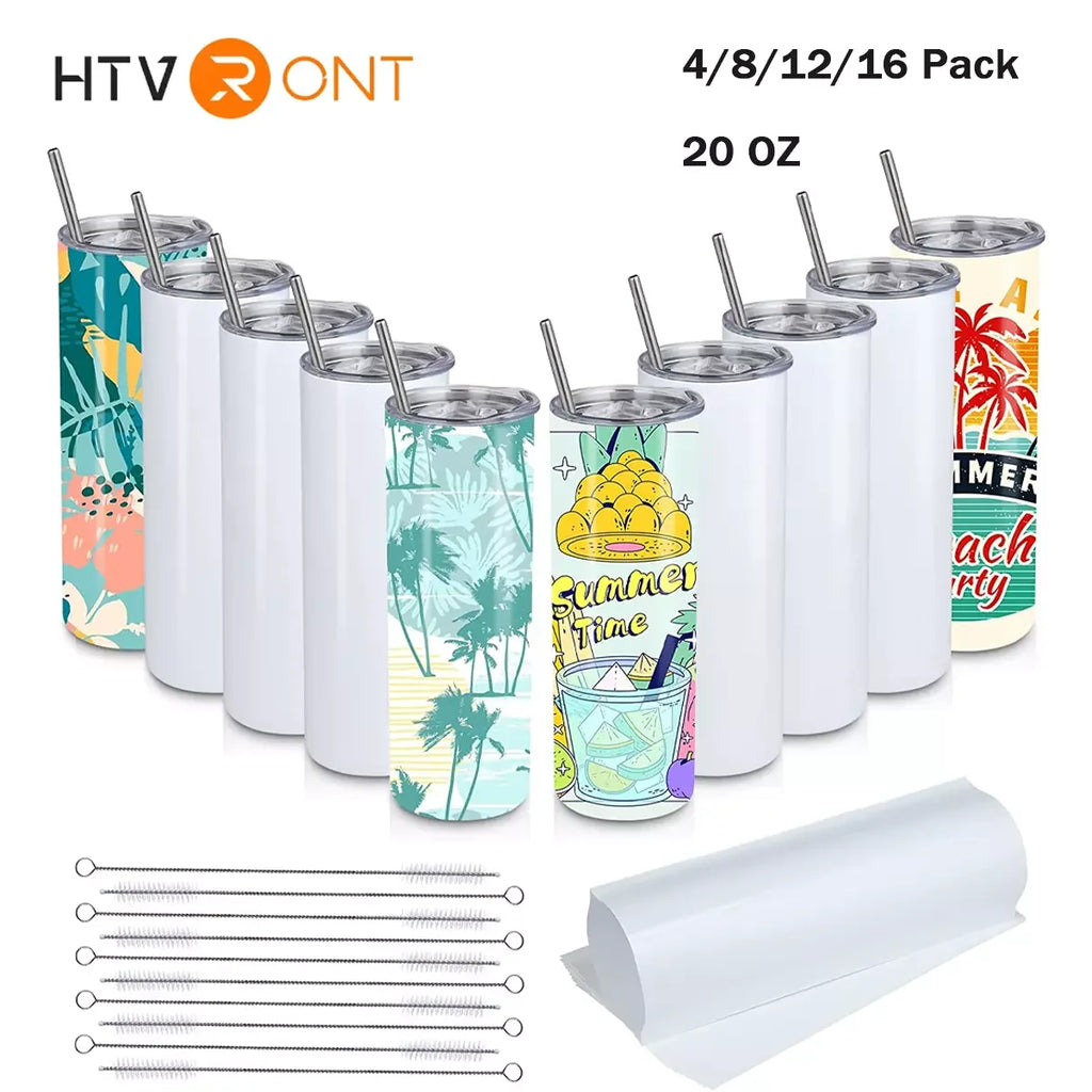 HTVRONT 4/8/12/16 Pcs 20 OZ Stainless Sublimation Tumblers Skinny Straight Sublimate Tumbler Blank DIY Mugs Cups Sippy Bottle