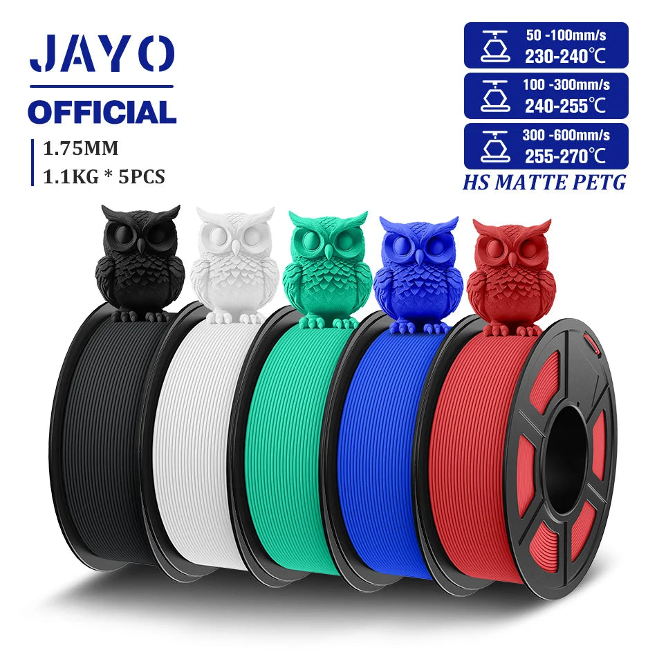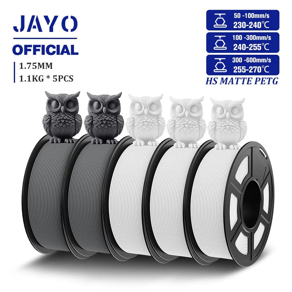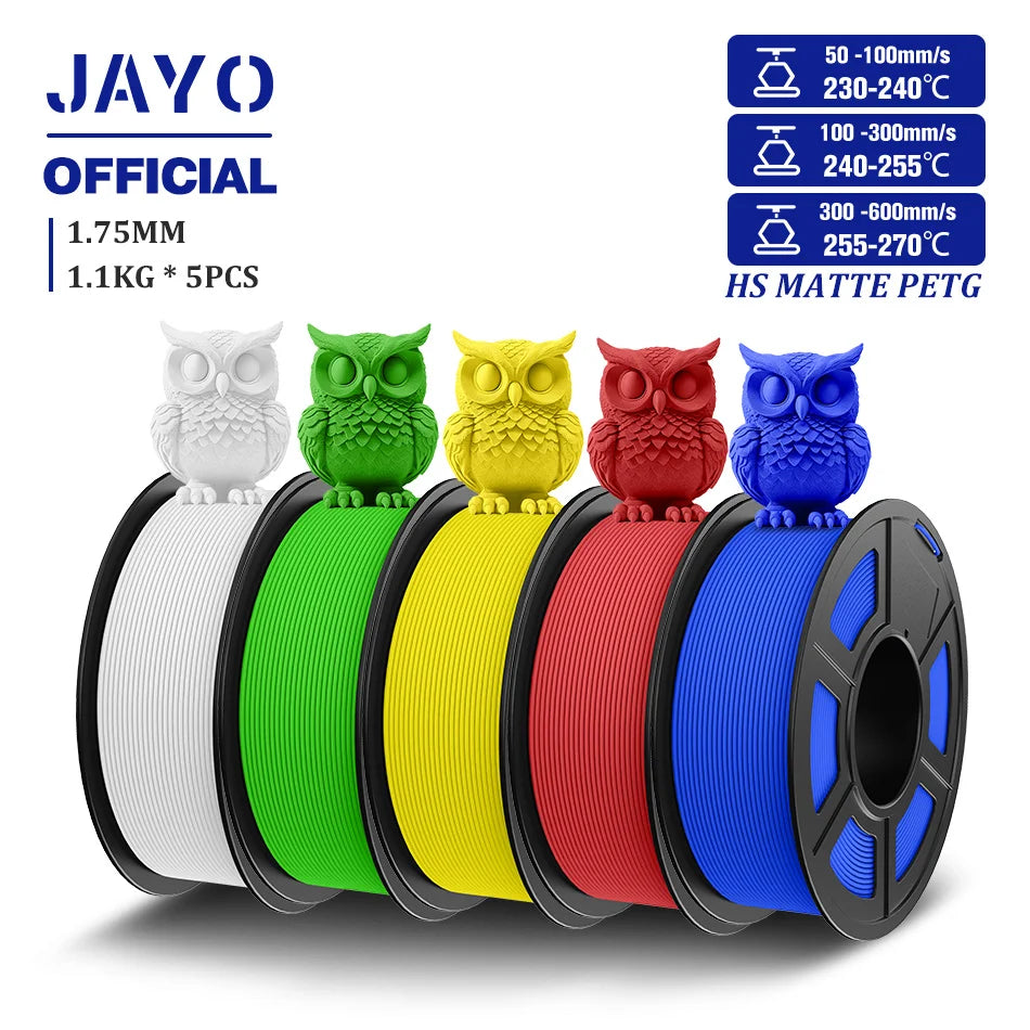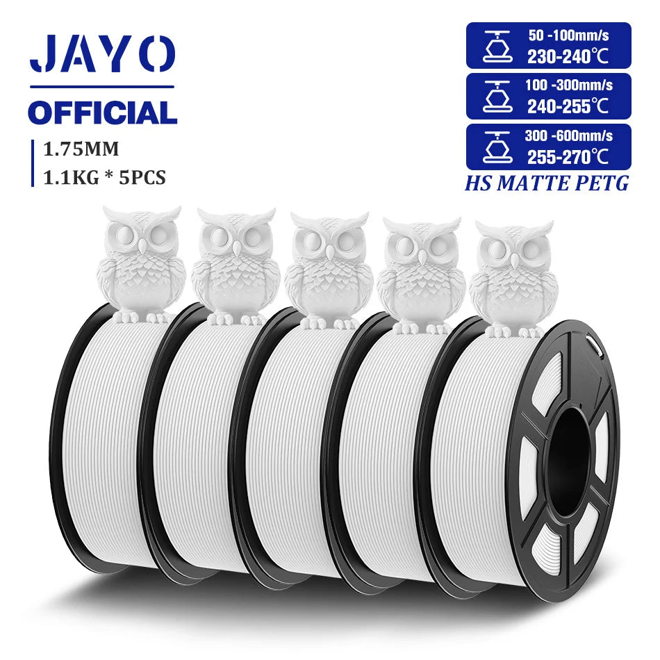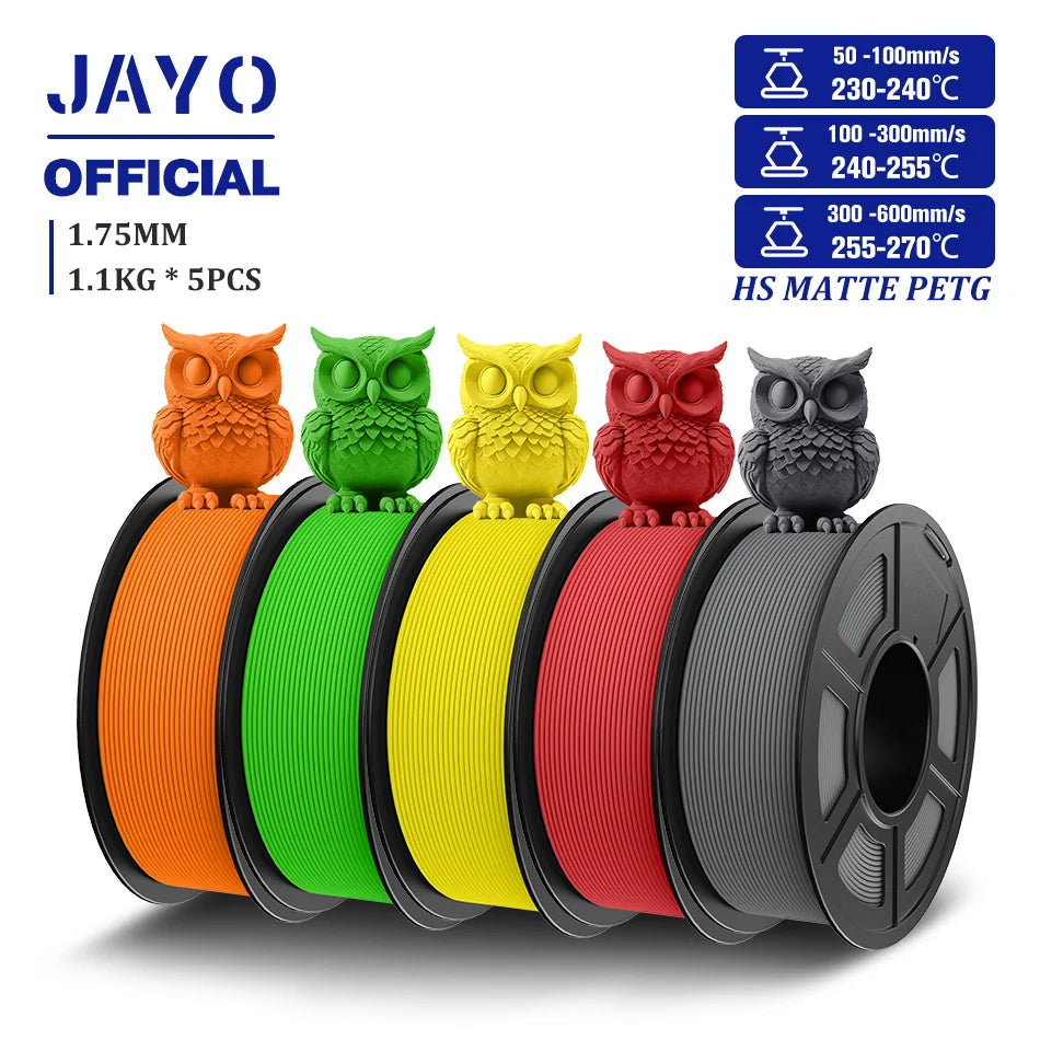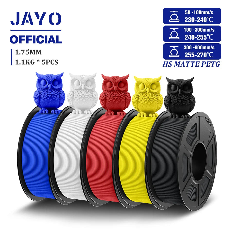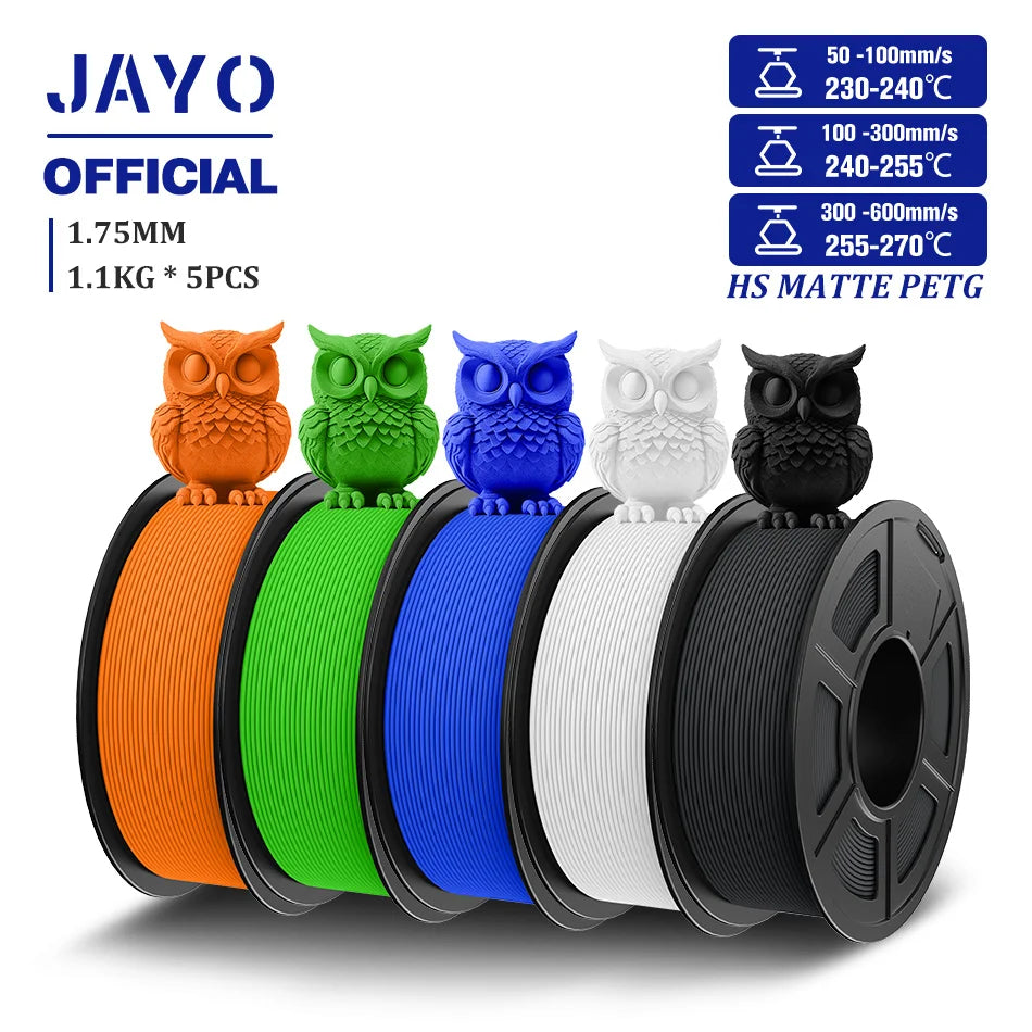 JAYO 5Rolls PETG Filament 1.75mm High Speed PETG 3D Printer Filament 1.1KG/Roll High Flow Speedy Matte 3D Printing Materials